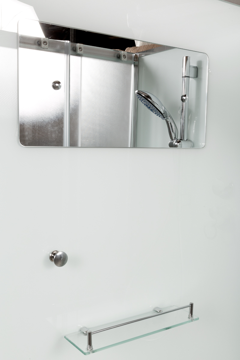 Вентиляция / Встроенное сиденье / Донный клапан (клик-клак) / Душевой гарнитур / Зеркало / Передний съемный экран / Переключатель режимов / Полочка / Сифон / Смеситель / Тропический душ