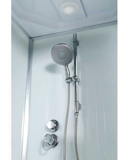 Стильная душевая кабина AvaCan D120S R сочетает в себе высокую функциональность, практичность и надежность. Для изготовления применяют безопасное закаленное стекло толщиной 4 мм, надежно фиксируемое алюминиевым профилем. Цвет профиля хром. В комплекте встроенное сидение, сифон, полочка, зеркало, смеситель, переключатель режимов, передний съемный экран, донный клапан (клик-клак), душевой гарнитур, тропический (верхний) душ, вентиляция