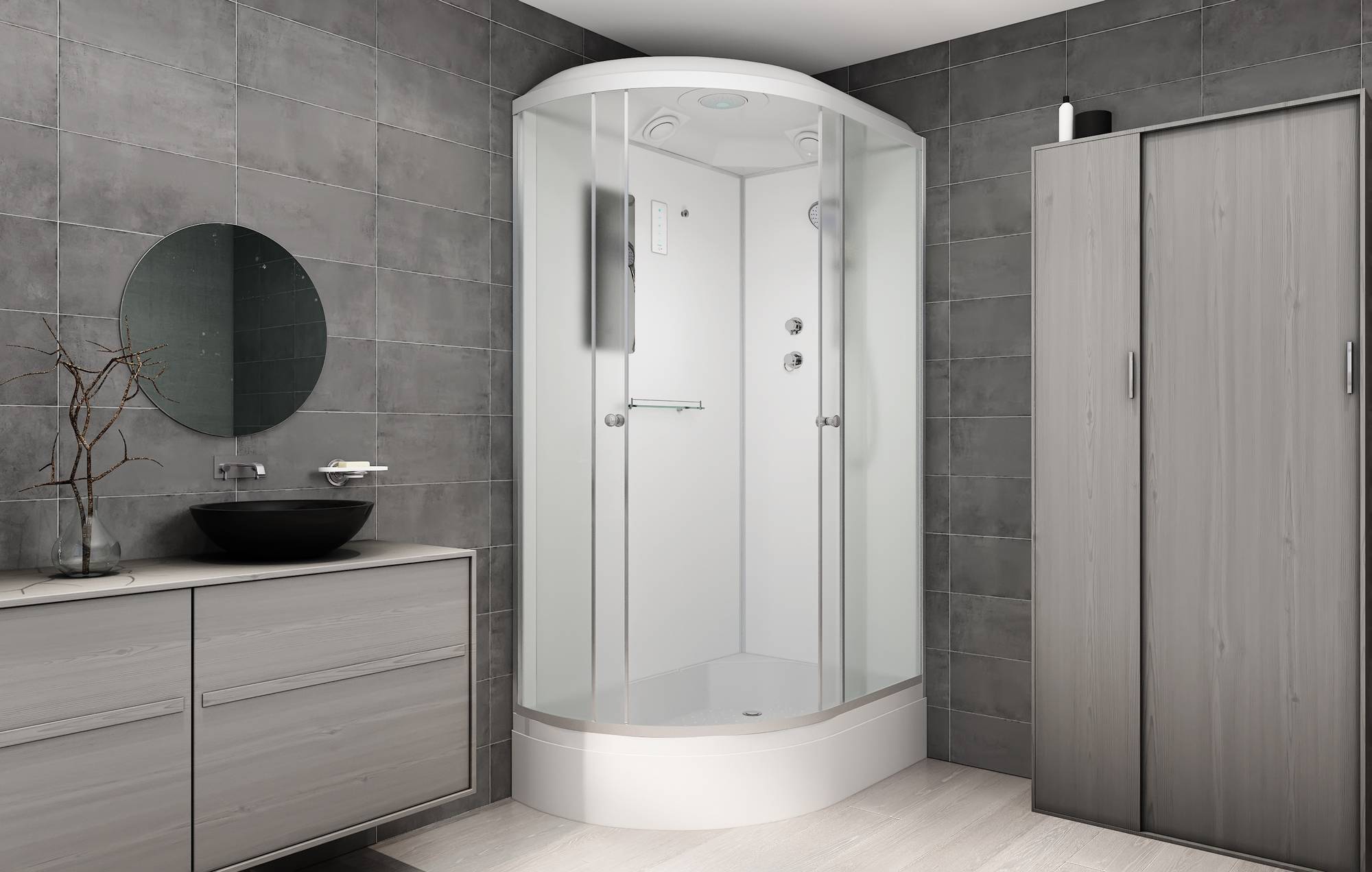 Стильная душевая кабина с внутренней сборкой AvaCan D312 S R сочетает в себе высокую функциональность, практичность и надежность. Для изготовления применяют безопасное закаленное стекло толщиной 4 мм, надежно фиксируемое алюминиевым профилем. Цвет профиля хром. В комплекте сифон, полочка, зеркало, смеситель, переключатель режимов, передний съемный экран, душевой гарнитур, тропический (верхний) душ, вентиляция,