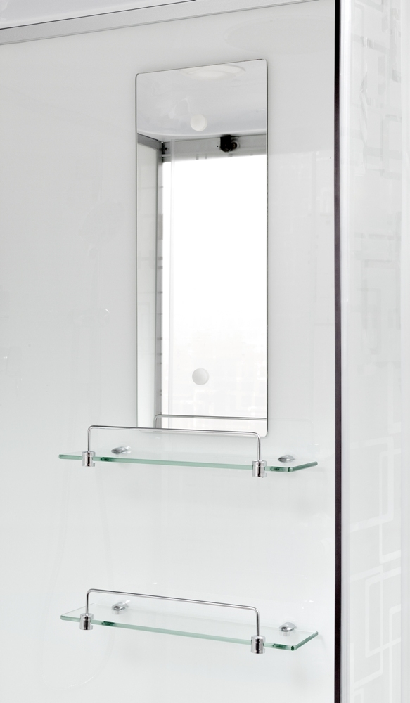Вентиляция / Гидромассажные форсунки / Деревянная вставка в поддон / Зеркало / Переключатель режимов / Полочки / Смеситель /