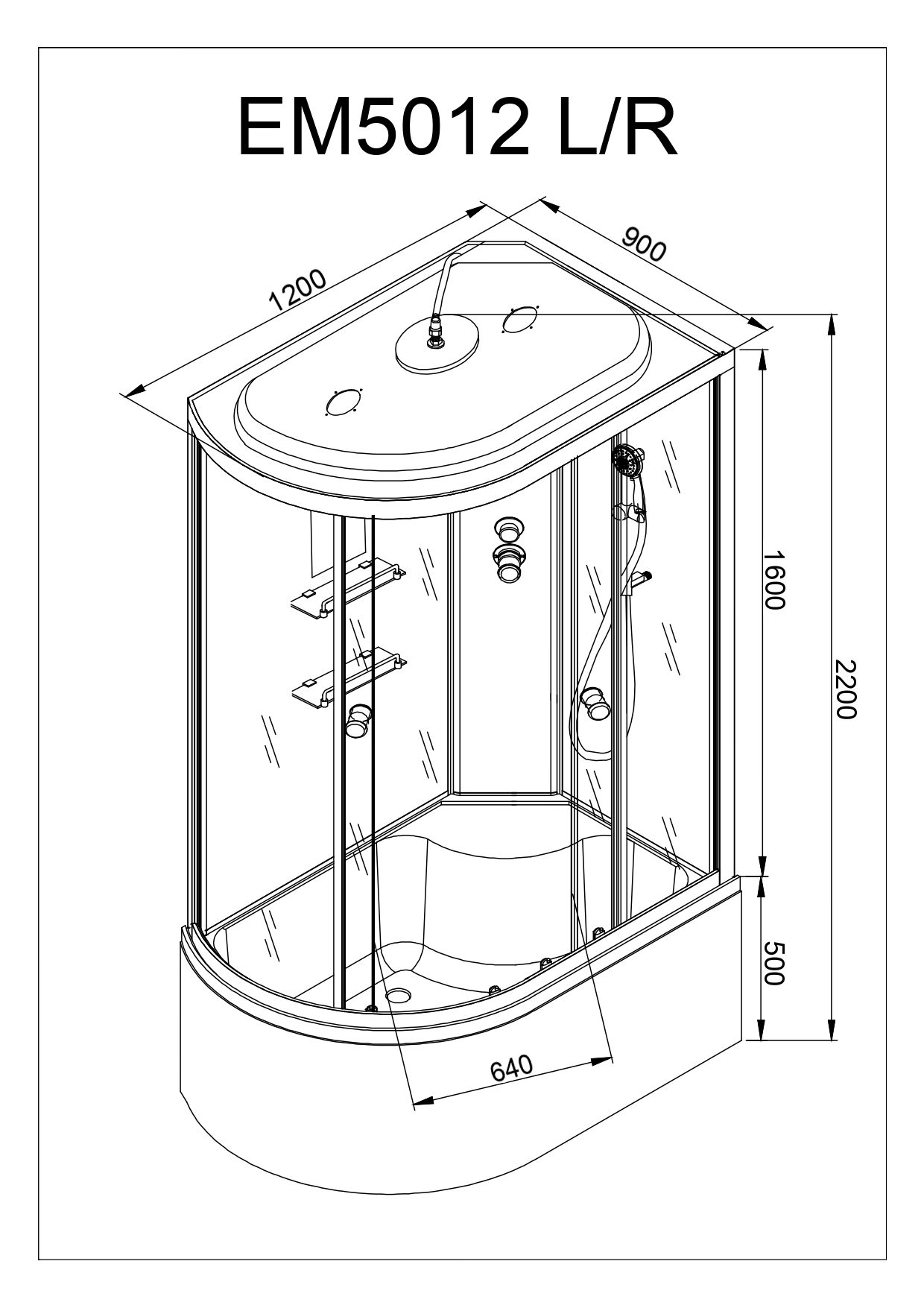 Стильная душевая кабина с внутренней сборкойAvaCan EM 5012 R сочетает в себе высокую функциональность, практичность и надежность. Для изготовления применяют безопасное закаленное стекло толщиной 5 мм, надежно фиксируемое алюминиевым профилем. Цвет профиля хром. В комплекте зеркало, донный клапан (клик-клак), переключатель режимов, смеситель, тропический (верхний) душ, полочки, сифон.