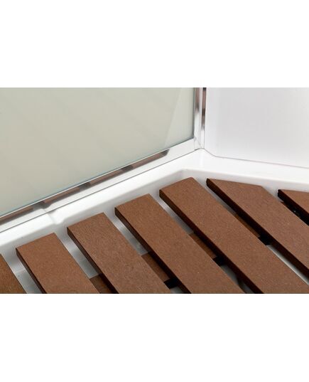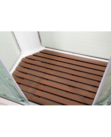 Деревянная вставка в поддон / Душевой гарнитур / Зеркало / Переключатель режимов / Полочки / Смеситель / Тропический (верхний) душ