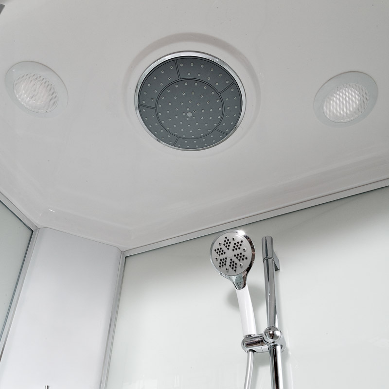 Вентиляция / Гидромассажные форсунки / Душевой гарнитур / Зеркало / Переключатель режимов / Полочки / Сифон / Смеситель / Тропический (верхний) душ