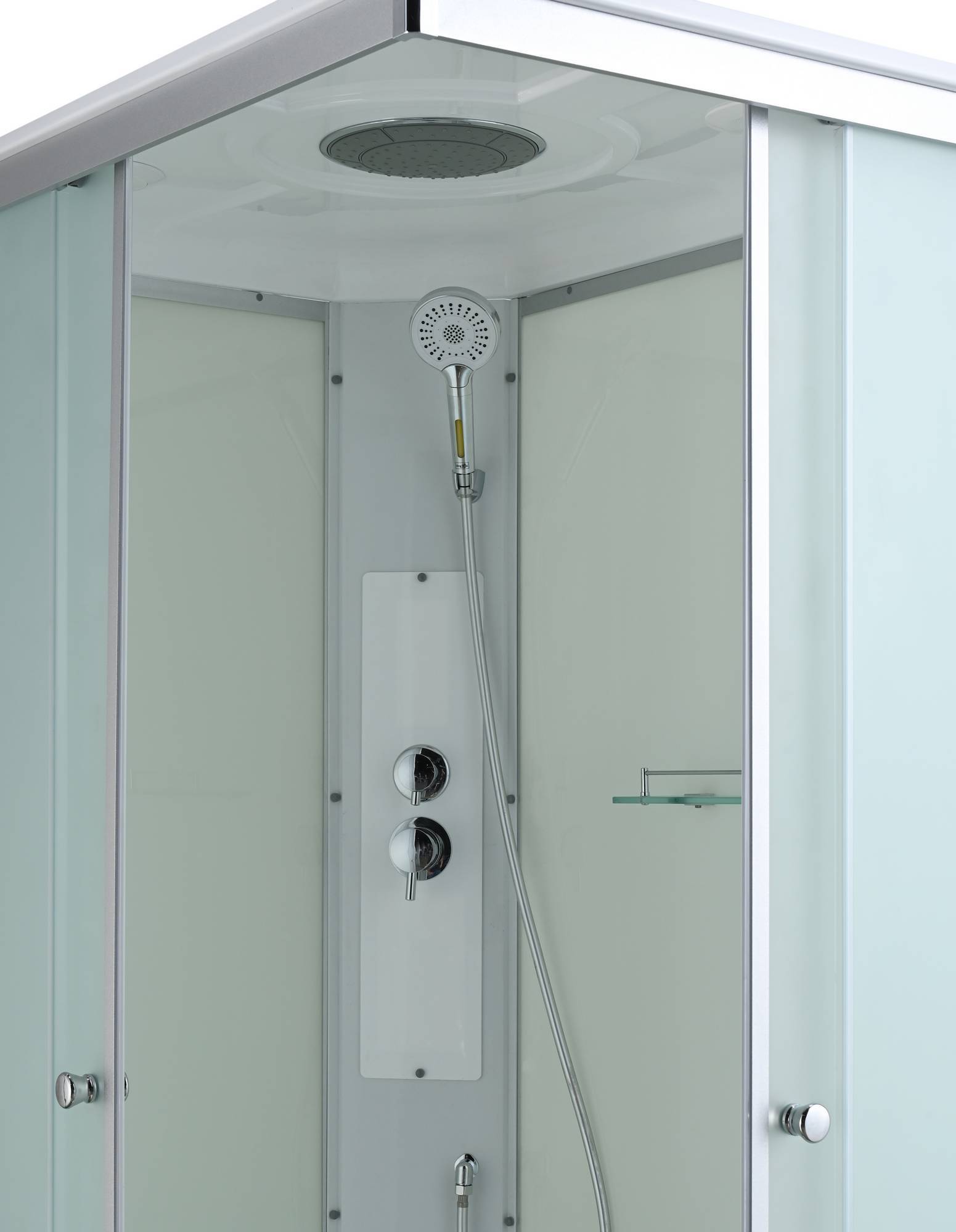 Стильная душевая кабина AvaCan сочетает в себе высокую функциональность, практичность и надежность. При изготовлении применяется безопасное закаленное стекло, надежно фиксируемое алюминиевым профилем. Профиль сделан из алюминия повышенной прочности. Сборка без силикона (увеличивает срок службы, защищает от протечек), внутренняя сборка (облегчает установку и ревизию; позволяет установить в ограниченном пространстве и обойтись без демонтажа других сантехнических приборов), смеситель резьбовой (без хомутов). Съемный экран поддона (позволяет осуществлять подключение и ревизию сифона).Двойные металлические ролики дверей (распределение нагрузки на два ролика, увеличивают срок службы). Ручная арома-лейка с витамином С (картридж в комплекте,есть возможность замены или удаления картриджа), полочка(из стекла, с ограничителем), сифон с гидрозатвором.