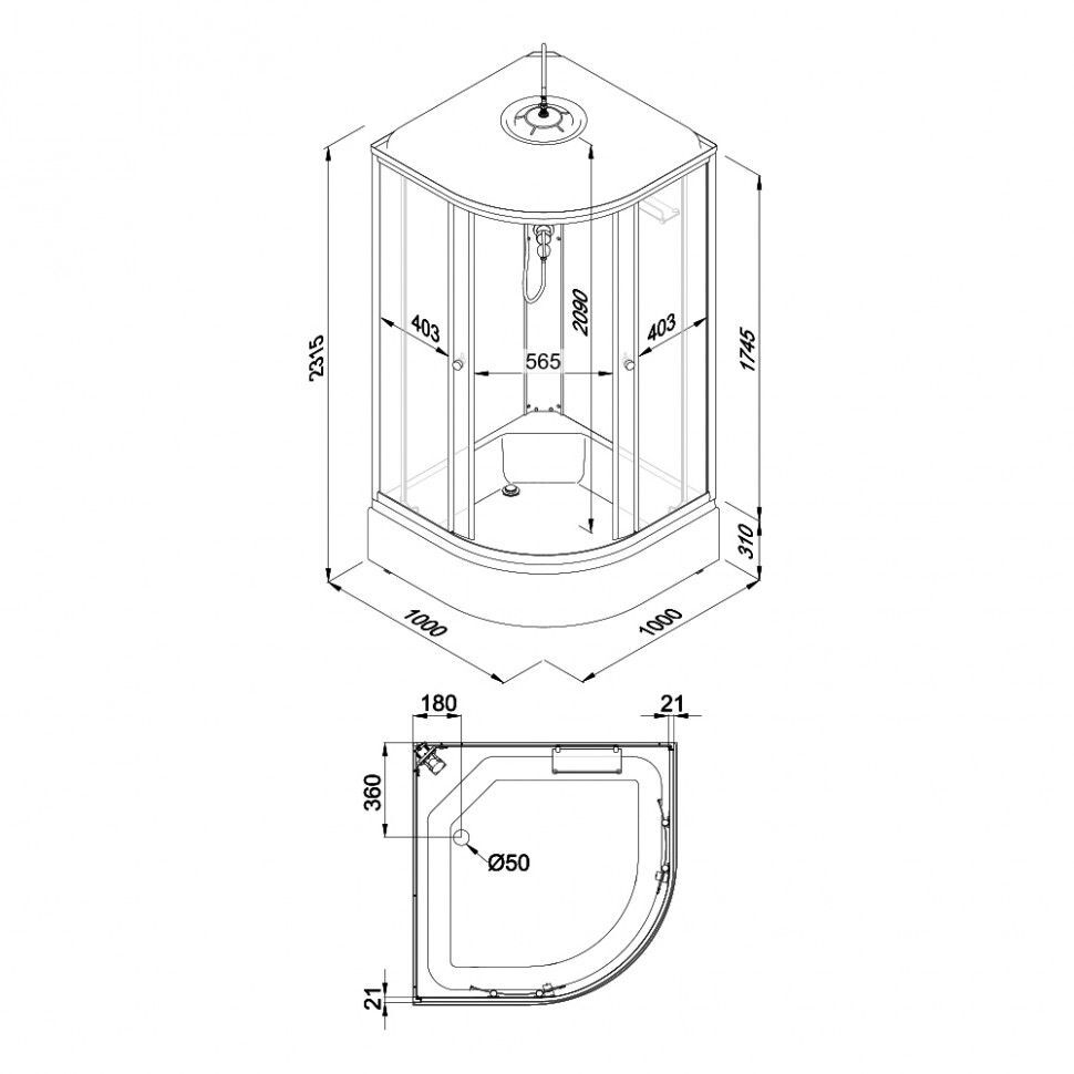 Верхний душ;Крыша;Ручной душ;Полка;Нескользящее покрытие пола