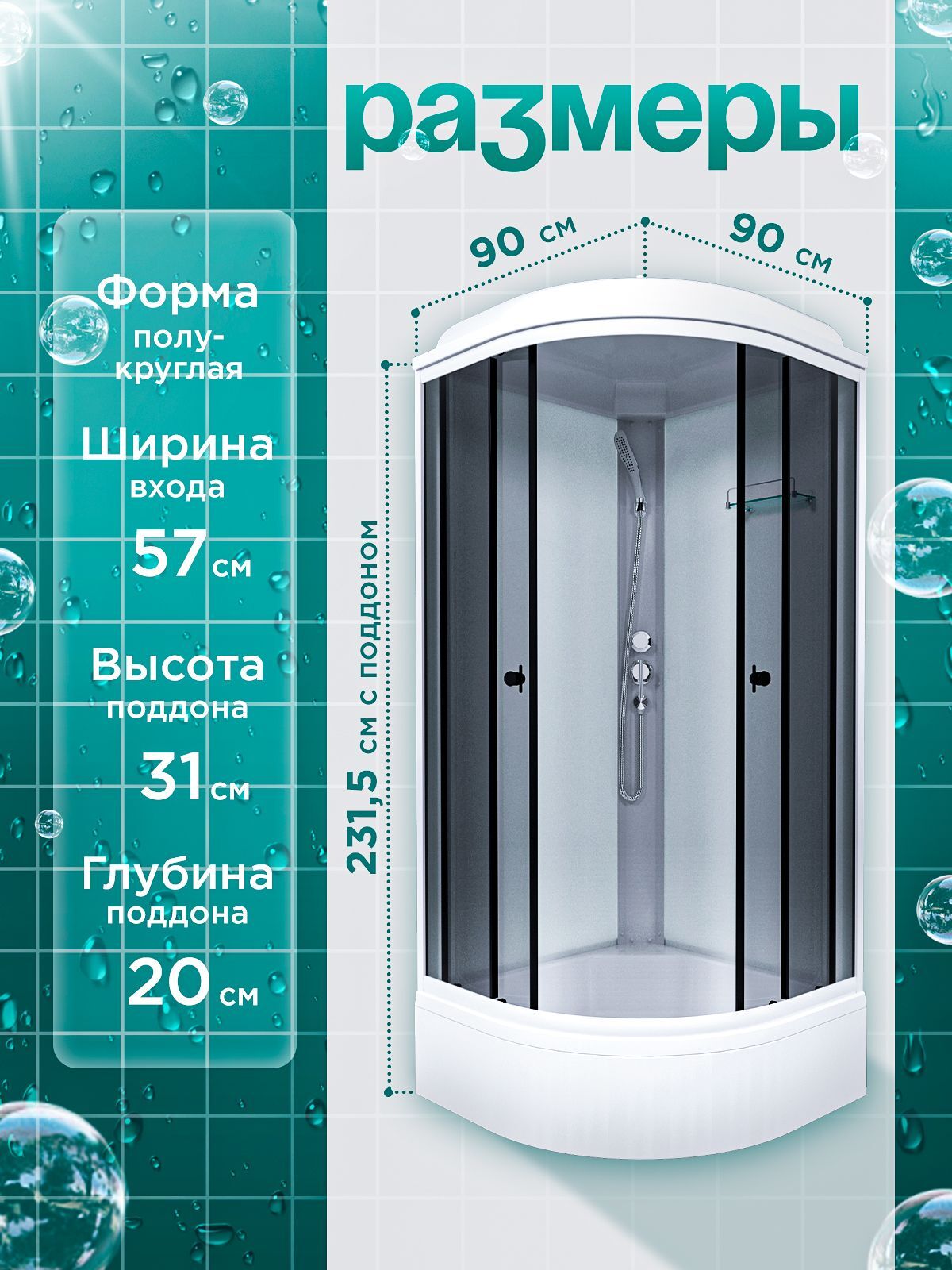 Смеситель, ручной душ, поддон, сифон, верхний душ