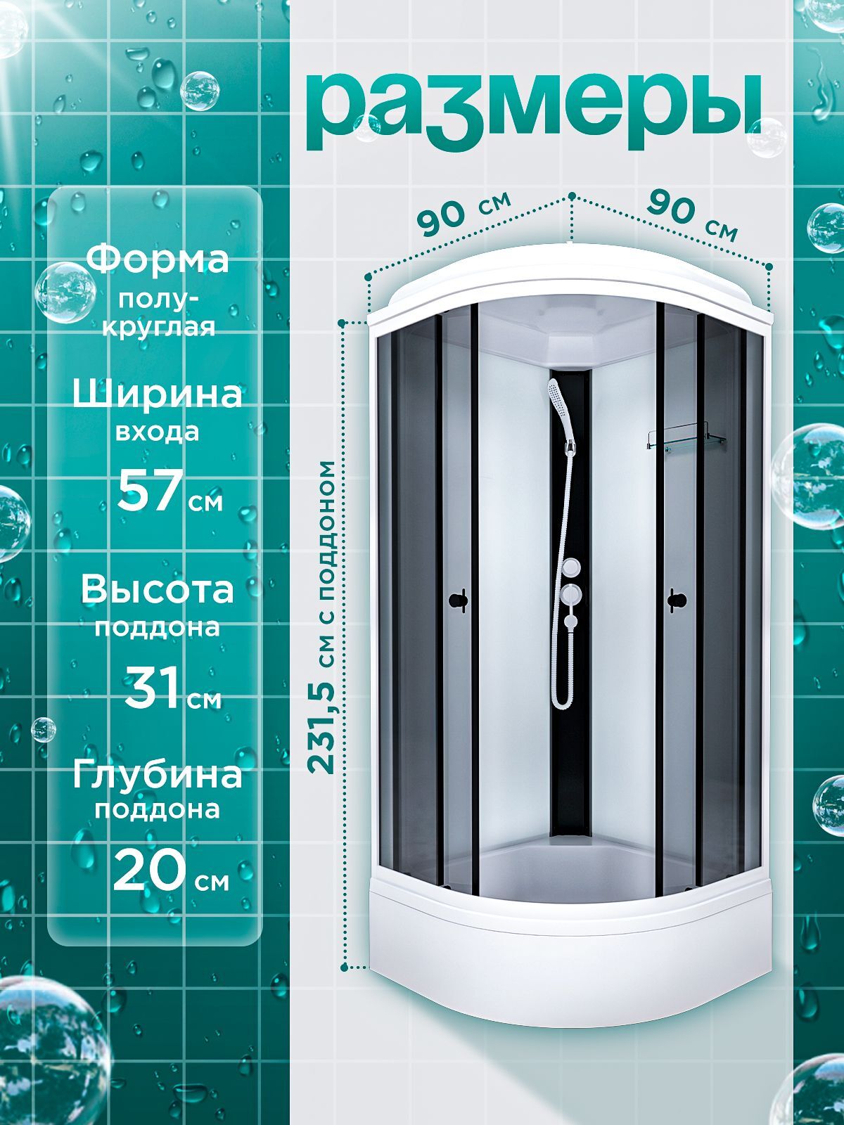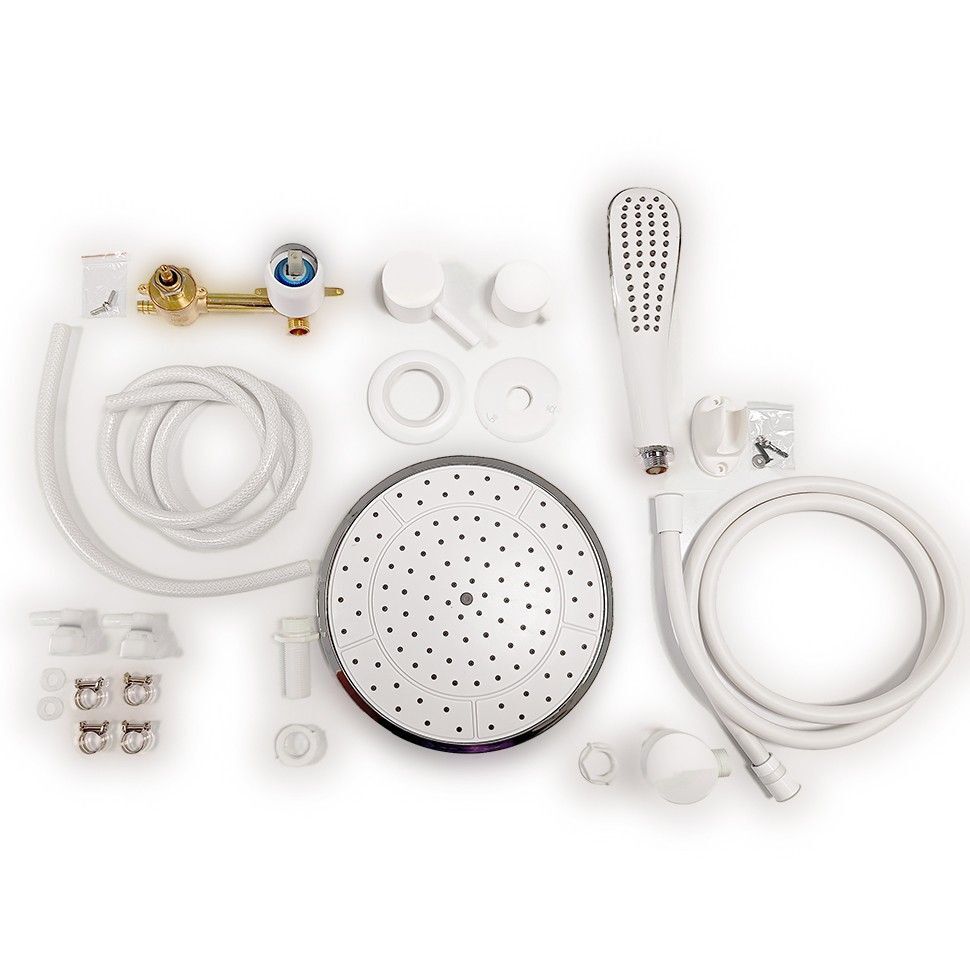 Смеситель, ручной душ, поддон, сифон, верхний душ