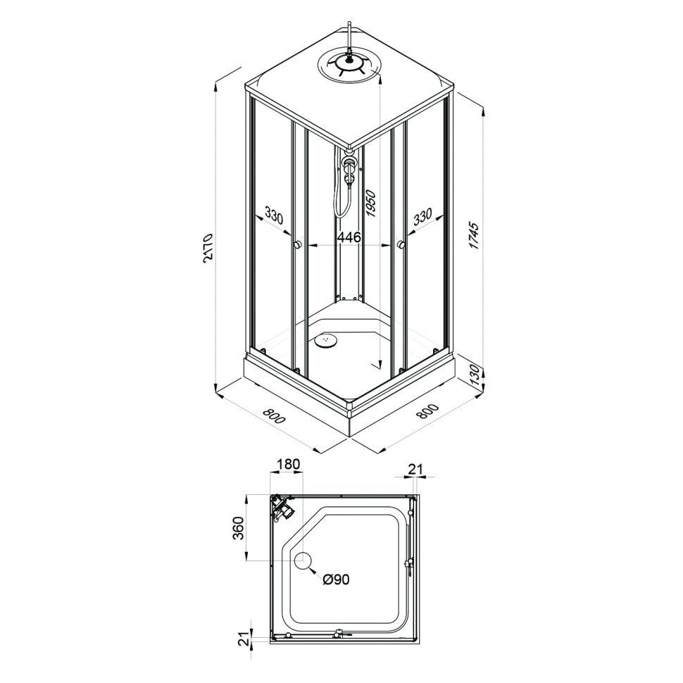 Смеситель, ручной душ, поддон, сифон, верхний душ