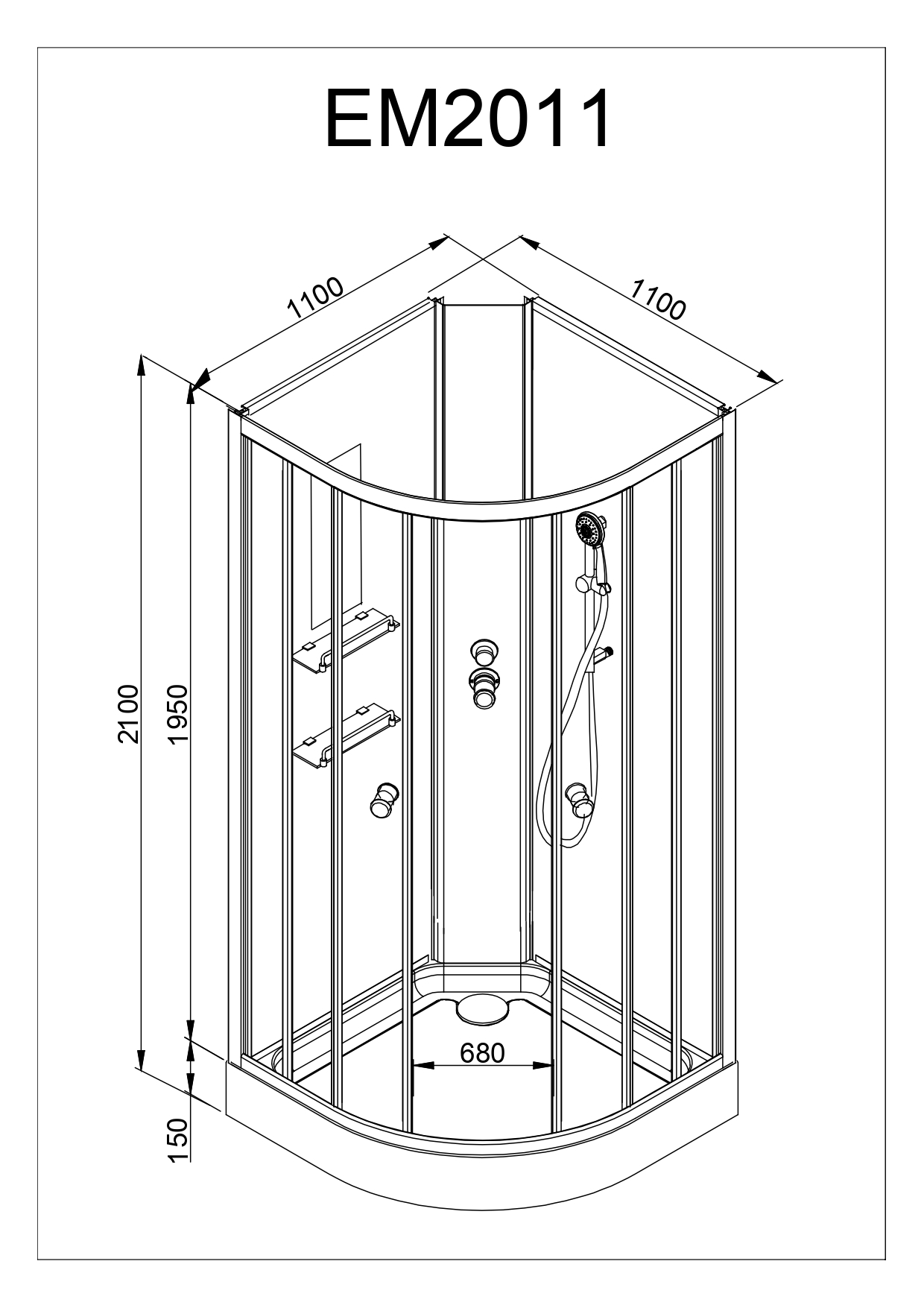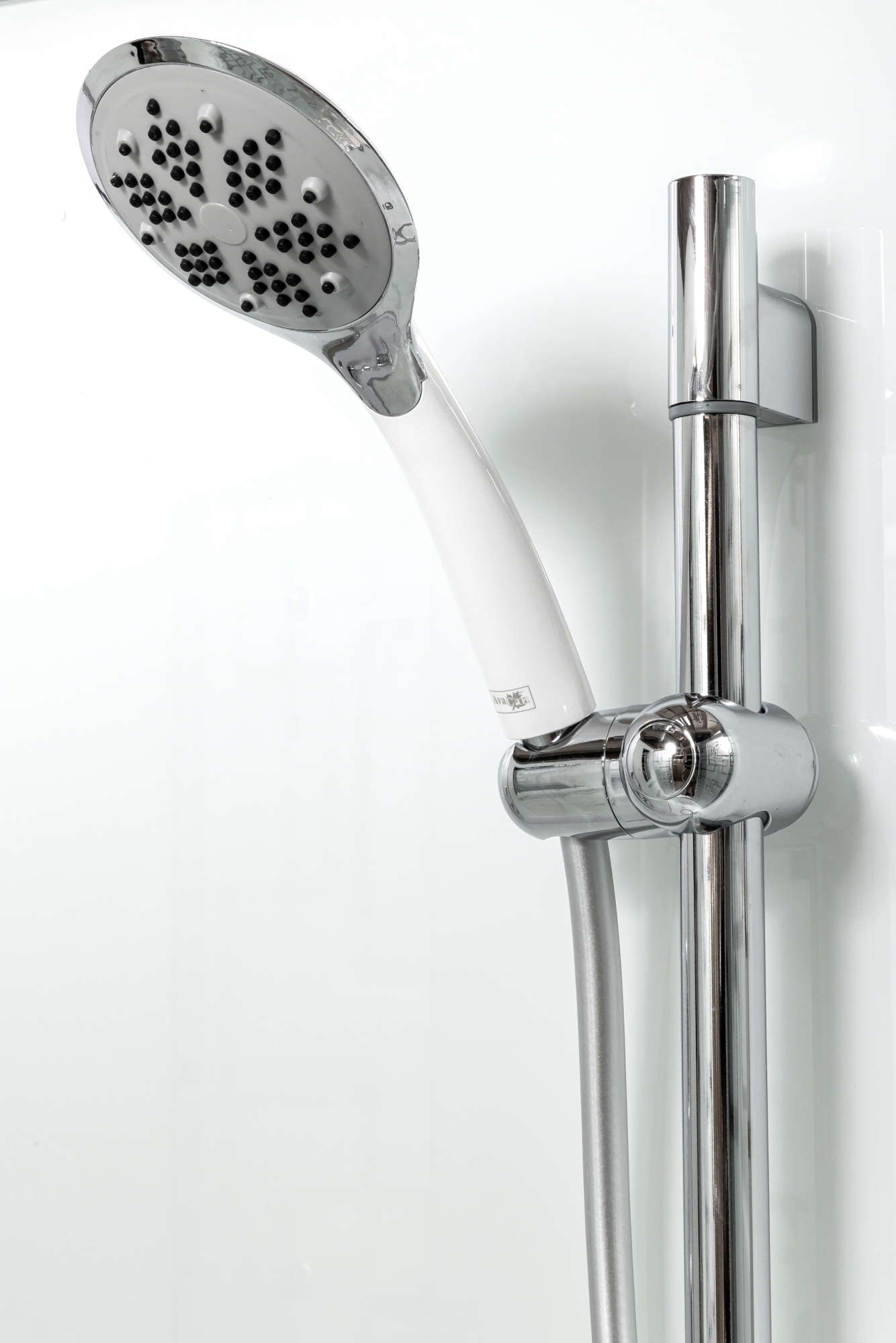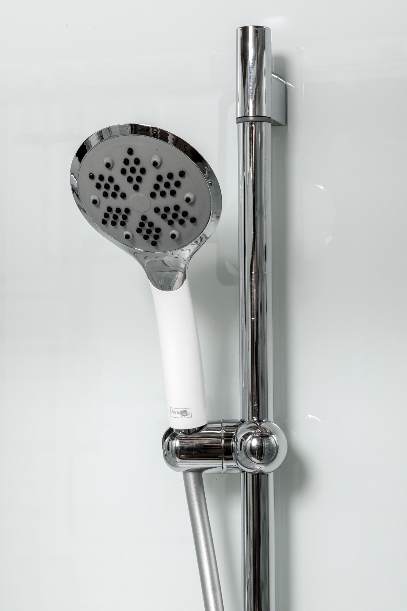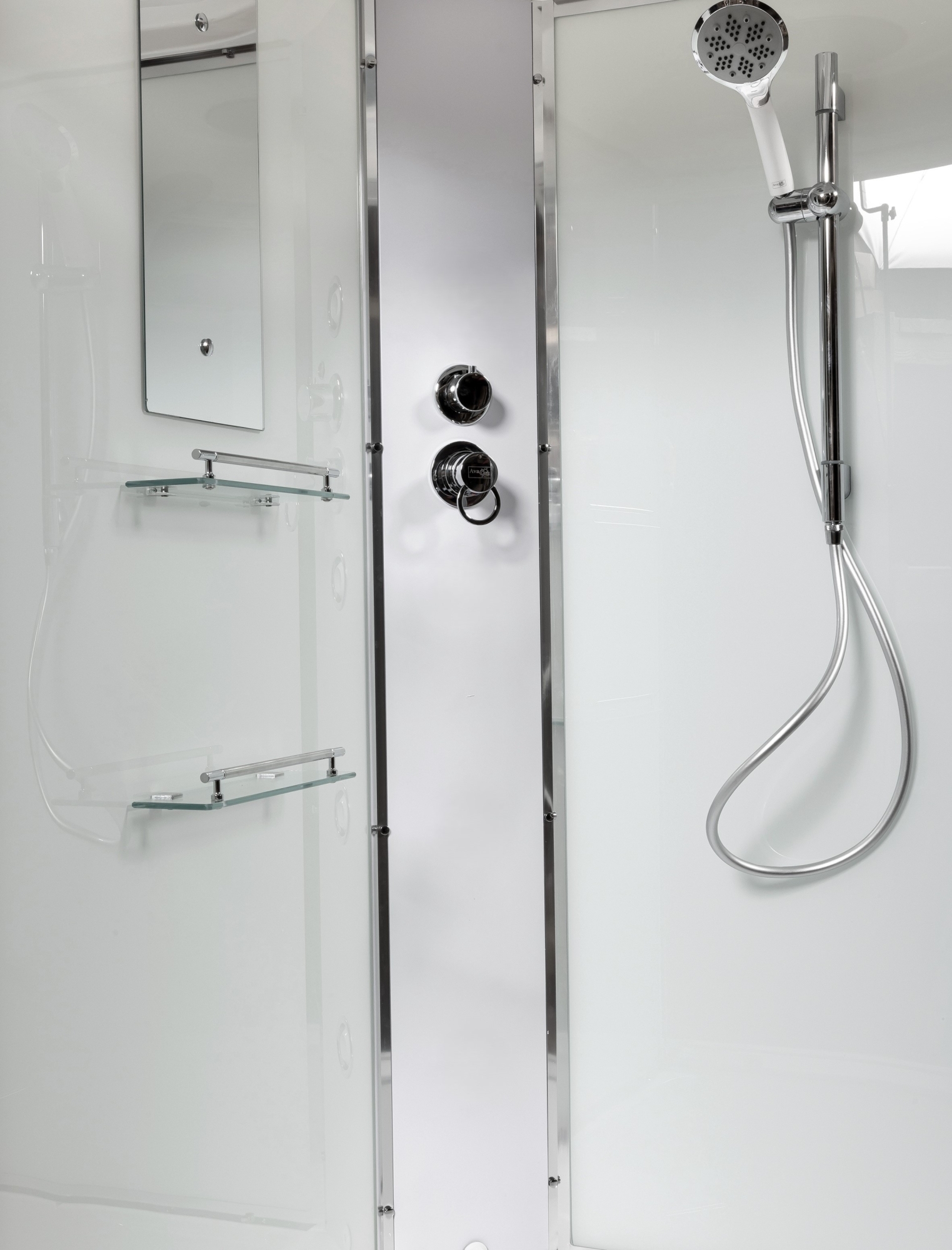 Деревянная вставка в поддон / Душевой гарнитур / Зеркало / Переключатель режимов / Полочки / Смеситель /