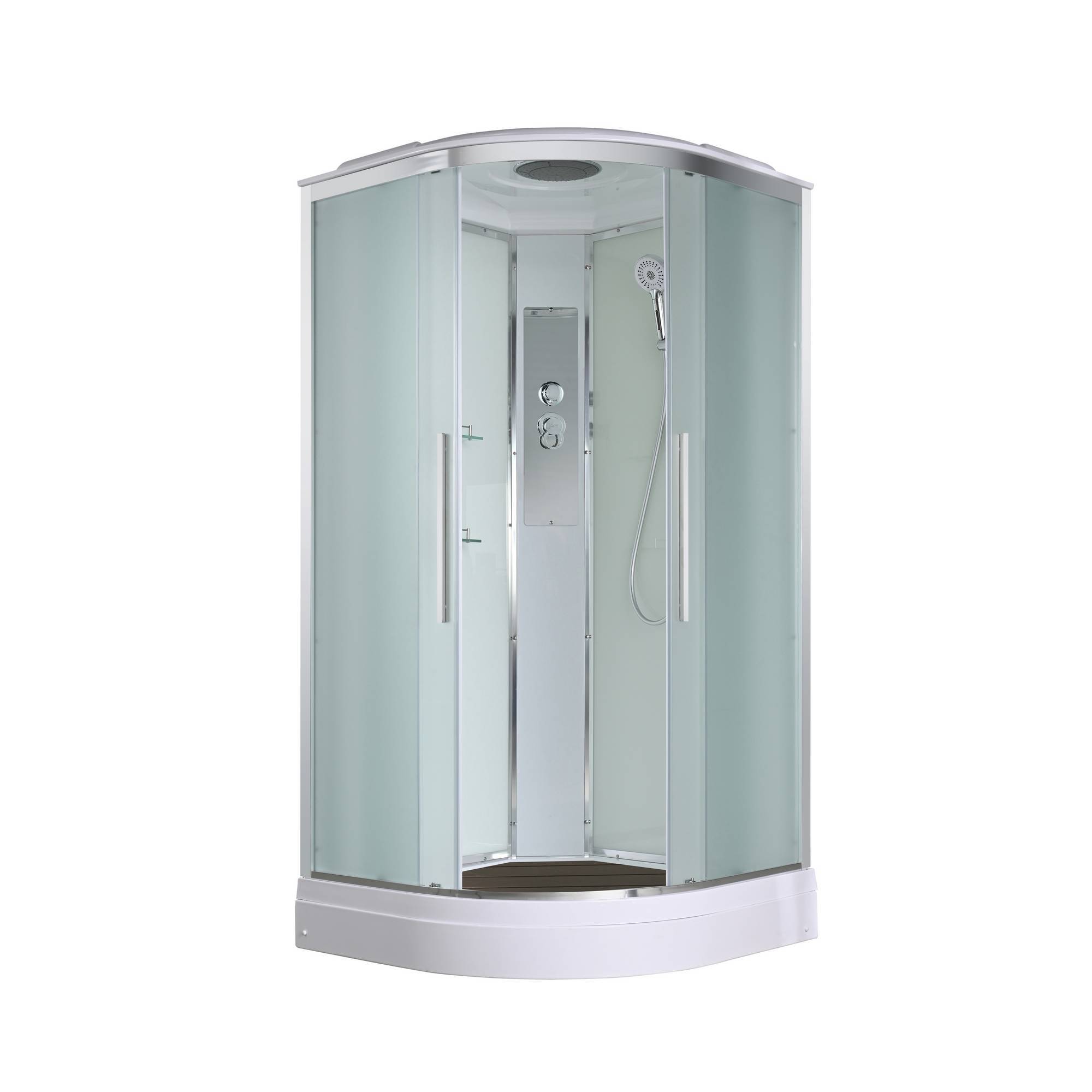Стильная душевая кабина AvaCan EM2090 сочетает в себе высокую функциональность, практичность и надежность. При изготовлении применяется безопасное закаленное стекло толщиной 5 мм (матовое), надежно фиксируемое алюминиевым профилем. Сборка без силикона (увеличивает срок службы), внутренняя сборка(облегчает установку и ревизию; позволяет установить в ограниченном пространстве), смеситель резьбовой (без хомутов). Съемный экран поддона (позволяет осуществлять ревизию сифона). Цвет профиля хром. Двойные металлические ролики дверей (увеличивают срок службы).В комплекте : душевая штанга, две полочки , тропический (верхний) душ, арома-лейка с витамином С (картридж съемный),полимерная вставка в поддон(имитация дерева),сифон, ручки дверей из нержавейки , двойные ролики .