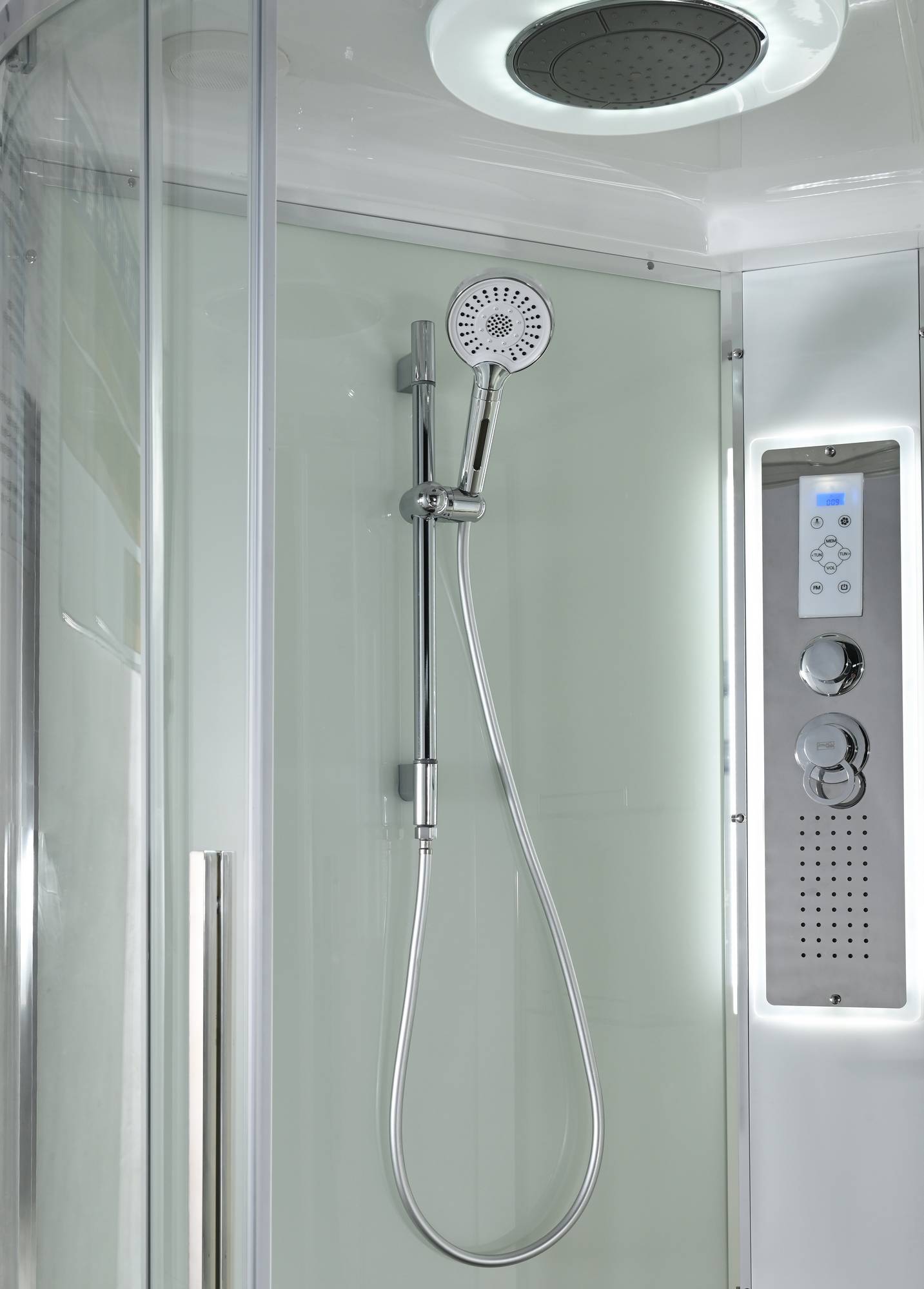 Стильная душевая кабина AvaCan EM2811RLEDT сочетает в себе высокую функциональность, практичность и надежность. При изготовлении применяется безопасное закаленное стекло толщиной 5 мм (прозрачное), надежно фиксируемое алюминиевым профилем. Сборка без силикона (увеличивает срок службы), внутренняя сборка(облегчает установку и ревизию; позволяет установить в ограниченном пространстве), смеситель резьбовой (без хомутов). Съемный экран поддона (позволяет осуществлять ревизию сифона). Цвет профиля хром. Двойные металлические ролики дверей (увеличивают срок службы).В комплекте : душевая штанга, две полочки , тропический (верхний) душ, арома-лейка с витамином С (картридж съемный),полимерная вставка в поддон(имитация дерева),сифон, ручки дверей из нержавейки , двойные ролики ,пульт сенсорный(Блютуз ,LED подсветка ,радио ,вытяжка),гидромассаж спины.