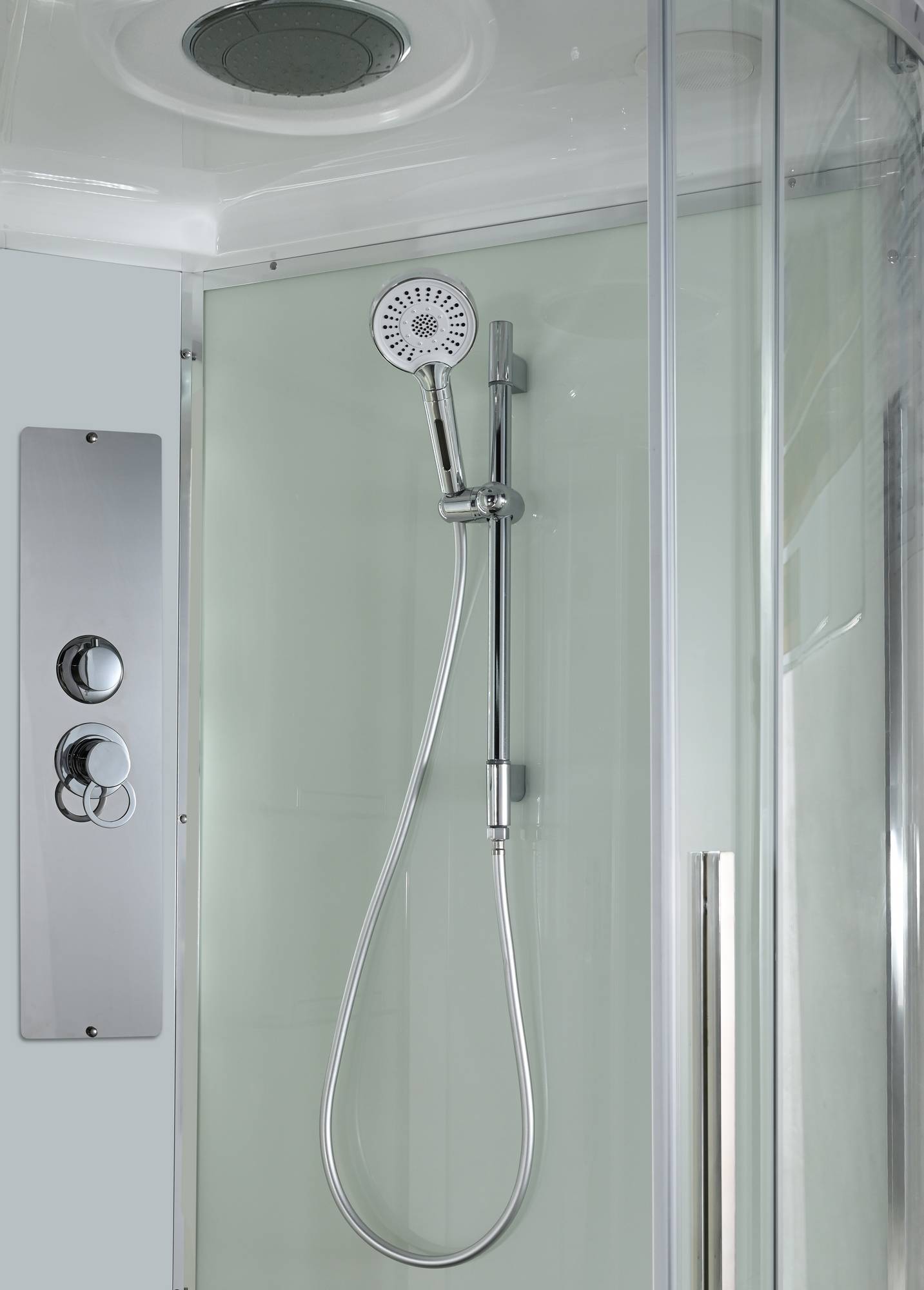сифон/ Переключатель режимов /2-е Полочки /резьбовой смеситель / Тропический (верхний) душ/ручки дверей из нержавейки /арома-лейка с витамином С/ Душевая штанга