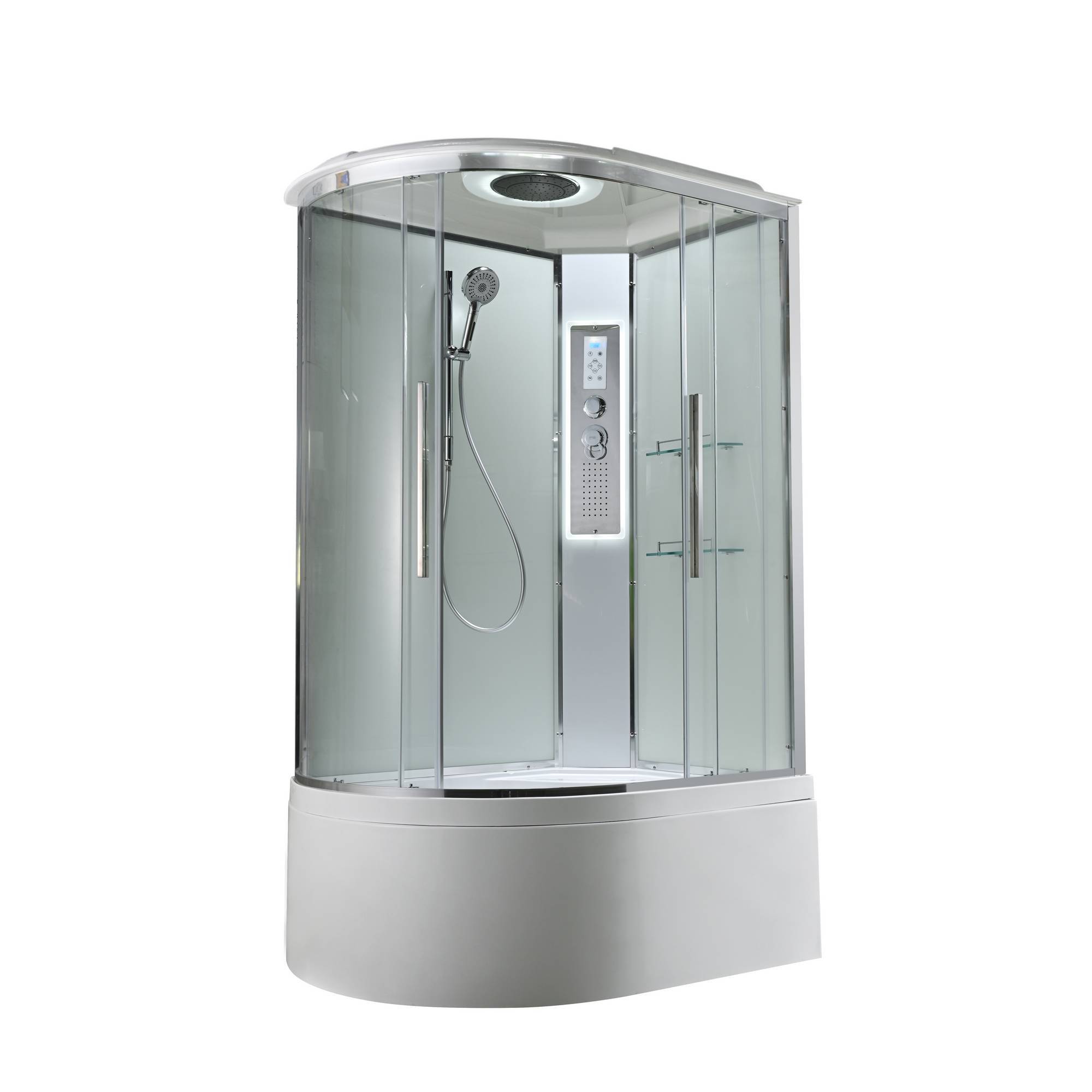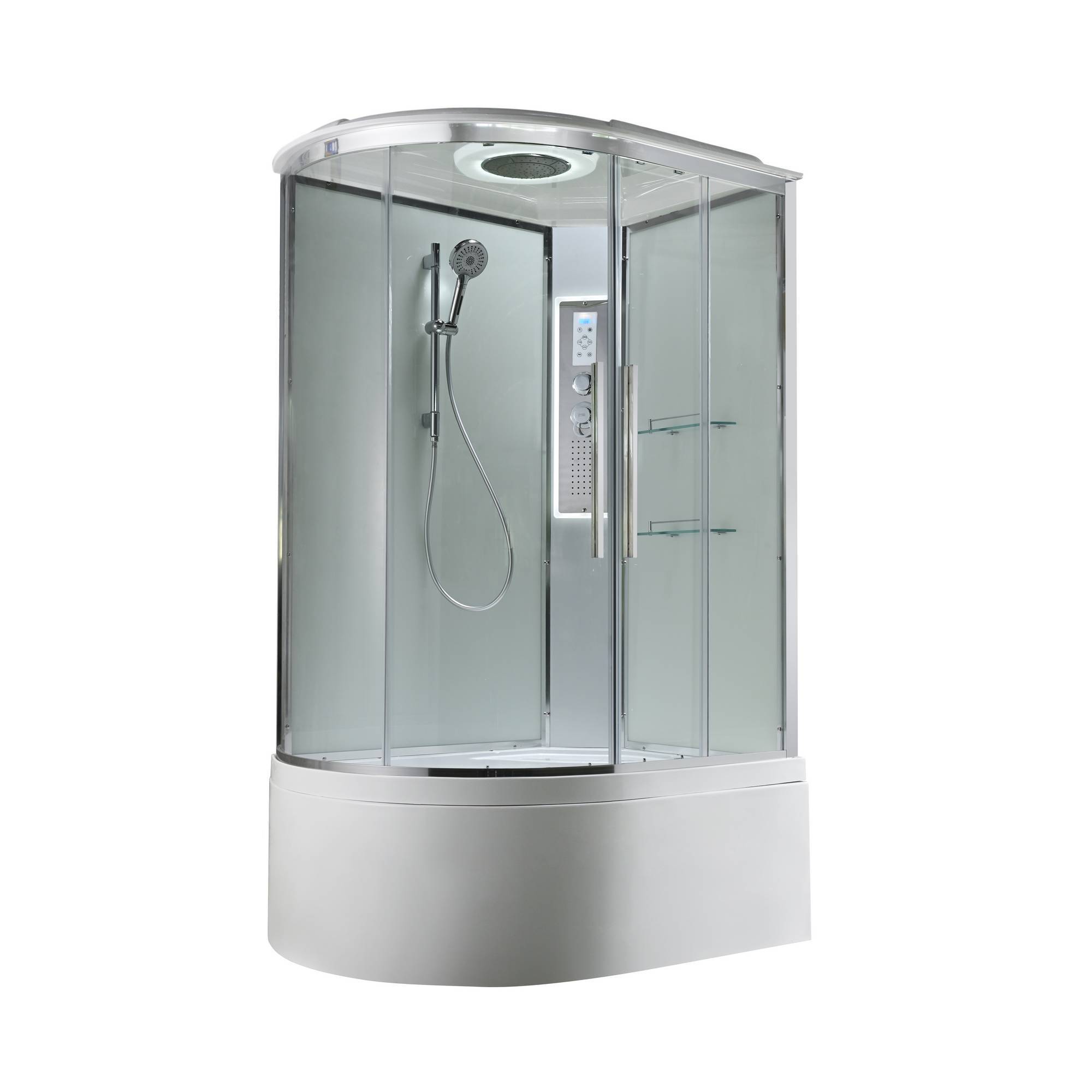 Блютуз / LED подсветка /радио /вытяжка/гидромассаж спины/сифон/ Переключатель режимов /2-е Полочки /резьбовой смеситель / Тропический (верхний) душ/ручки дверей из нержавейки /арома-лейка с витамином С/ Душевая