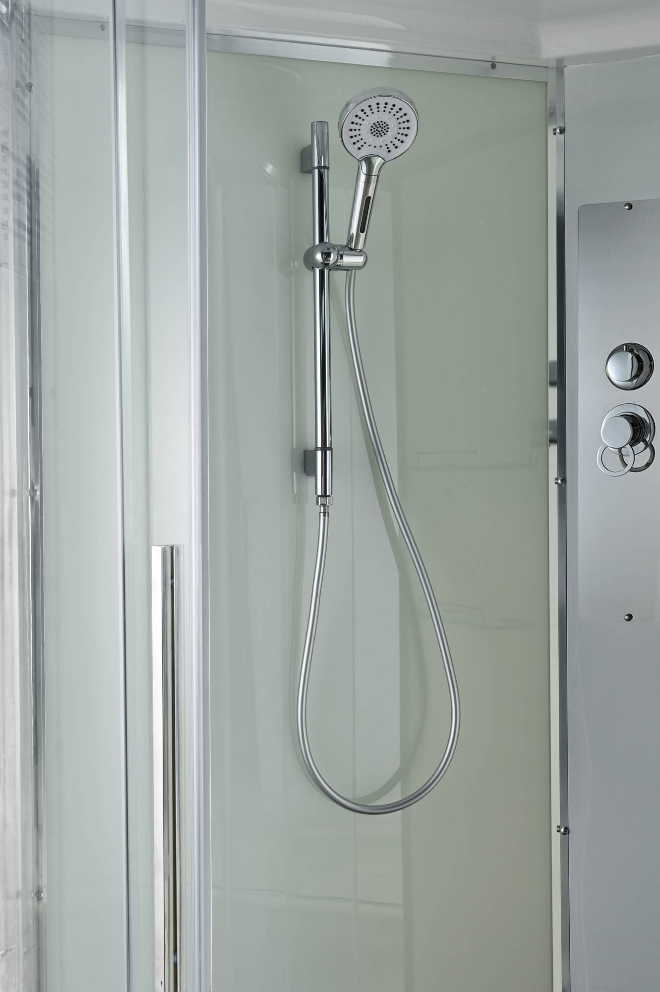 /сифон/ Переключатель режимов /2-е Полочки /резьбовой смеситель / Тропический (верхний) душ/ручки дверей из нержавейки /арома-лейка с витамином С/ Душевая штанга
