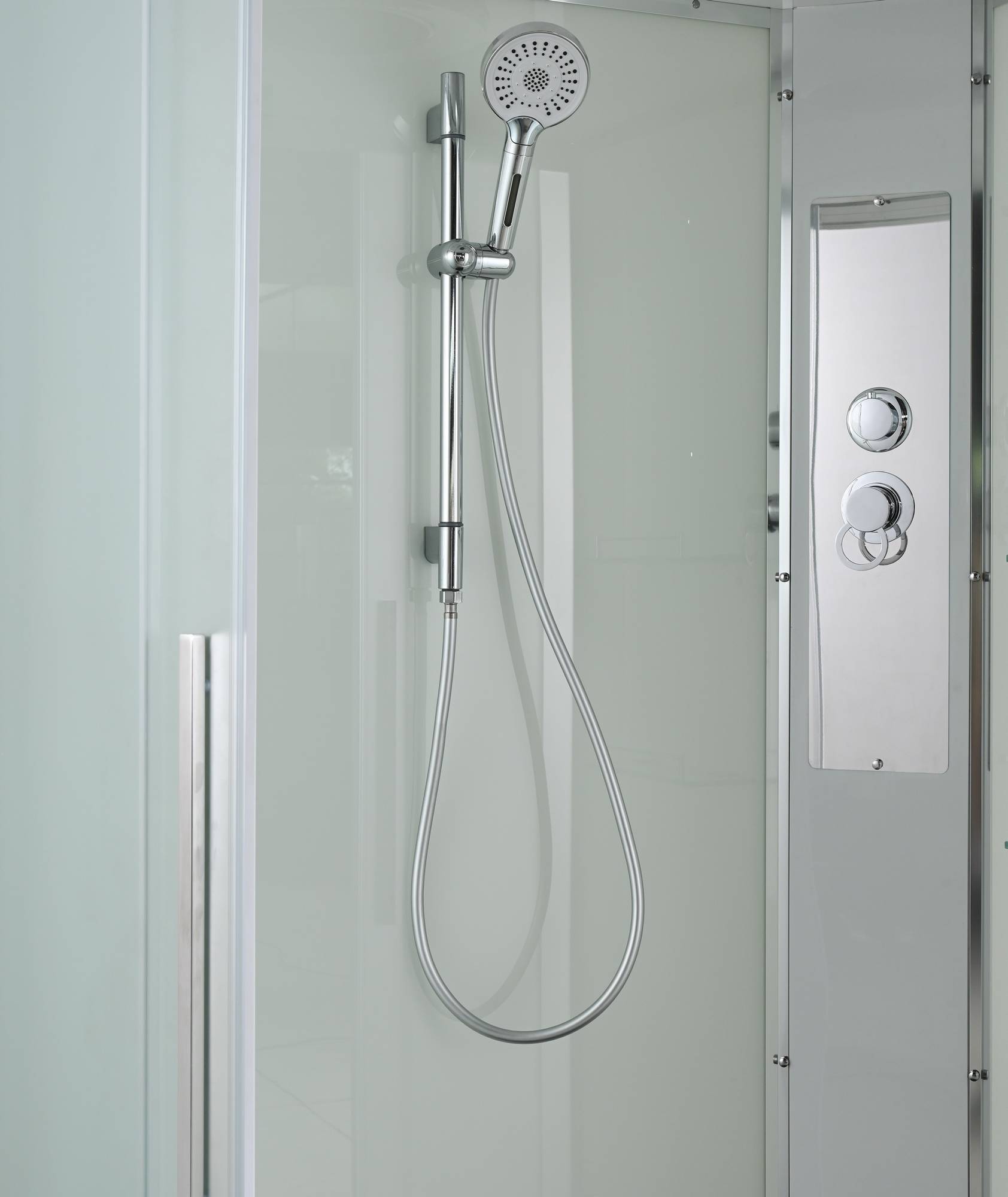 /сифон/ Переключатель режимов /2-е Полочки /резьбовой смеситель /ручки дверей из нержавейки /арома-лейка с витамином С/ Душевая штанга