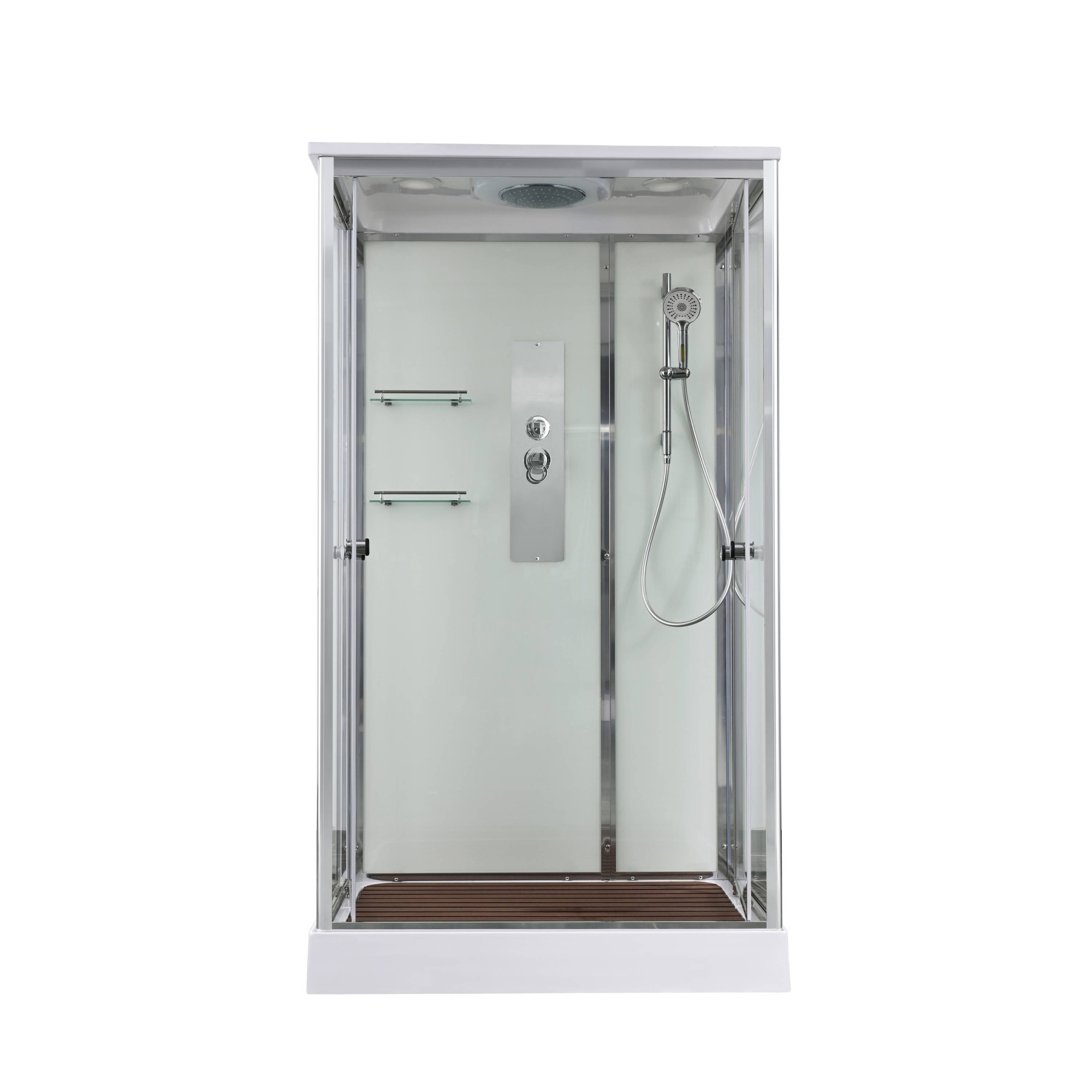 Стильная душевая кабина AvaCan сочетает в себе высокую функциональность, практичность и надежность. При изготовлении применяется безопасное закаленное стекло, надежно фиксируемое алюминиевым профилем. Профиль сделан из алюминия повышенной прочности. Сборка без силикона (увеличивает срок службы, защищает от протечек), внутренняя сборка (облегчает установку и ревизию; позволяет установить в ограниченном пространстве и обойтись без демонтажа других сантехнических приборов), смеситель резьбовой (без хомутов).Съемный экран поддона (позволяет осуществлять подключение и ревизию сифона).Двойные металлические ролики дверей (распределение нагрузки на два ролика, увеличивают срок службы). Душевая штанга(позволяет регулировать по высоте ручную лейку), ручная арома-лейка с витамином С (картридж в комплекте,есть возможность замены или удаления картриджа), полочки(из стекла, с ограничителем), сифон с гидрозатвором.