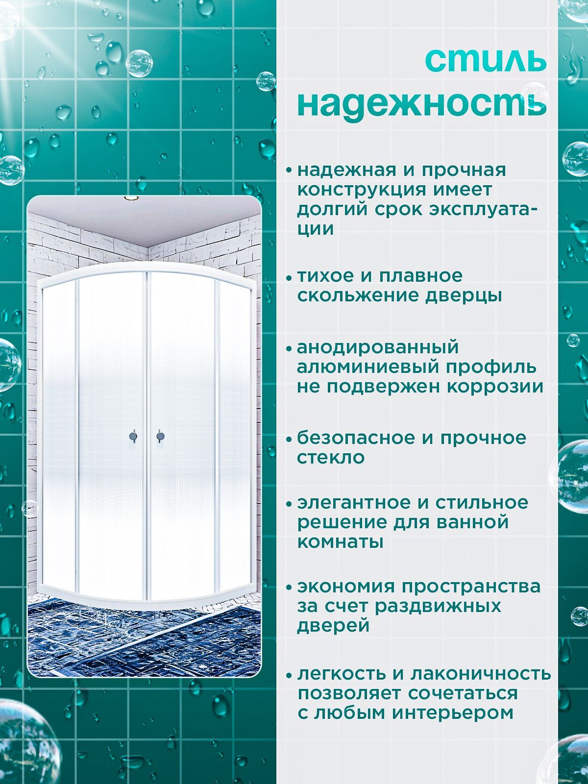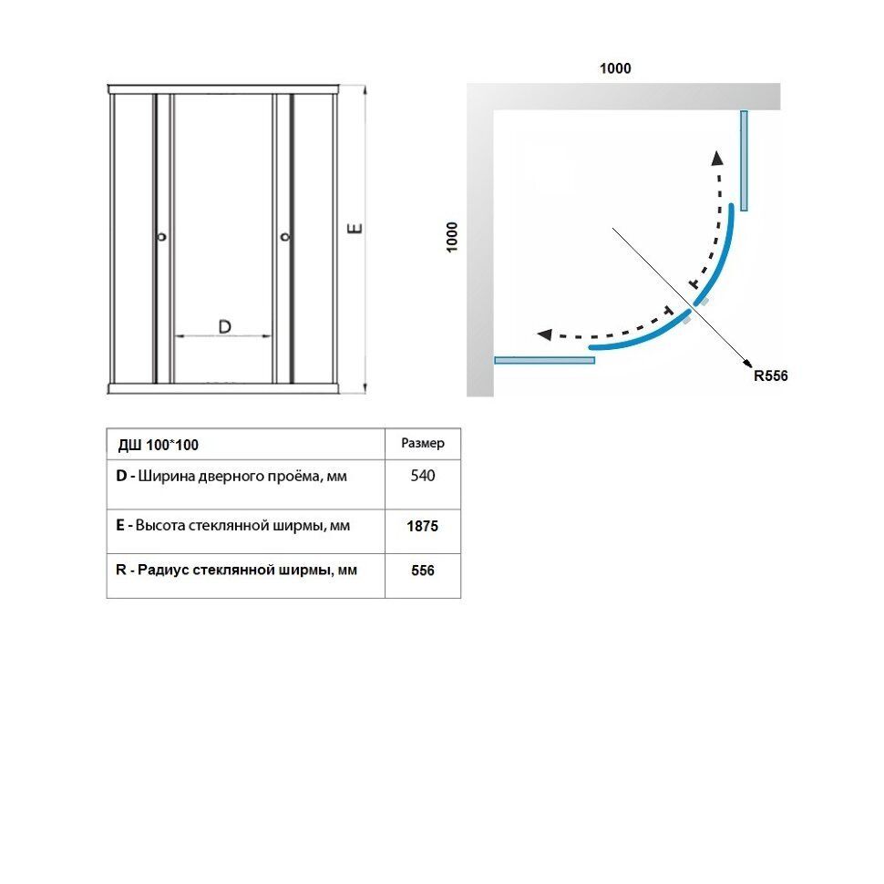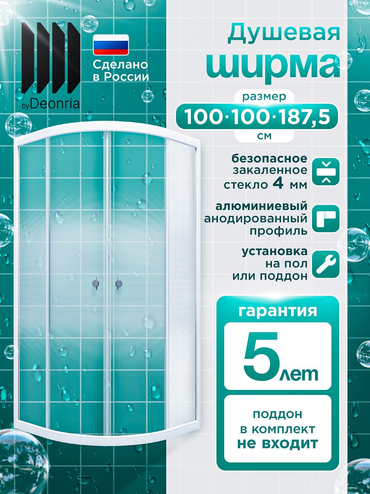 Душевая ширма DIONRIA (100х100) стекло с рисунком лайт, профиль белый