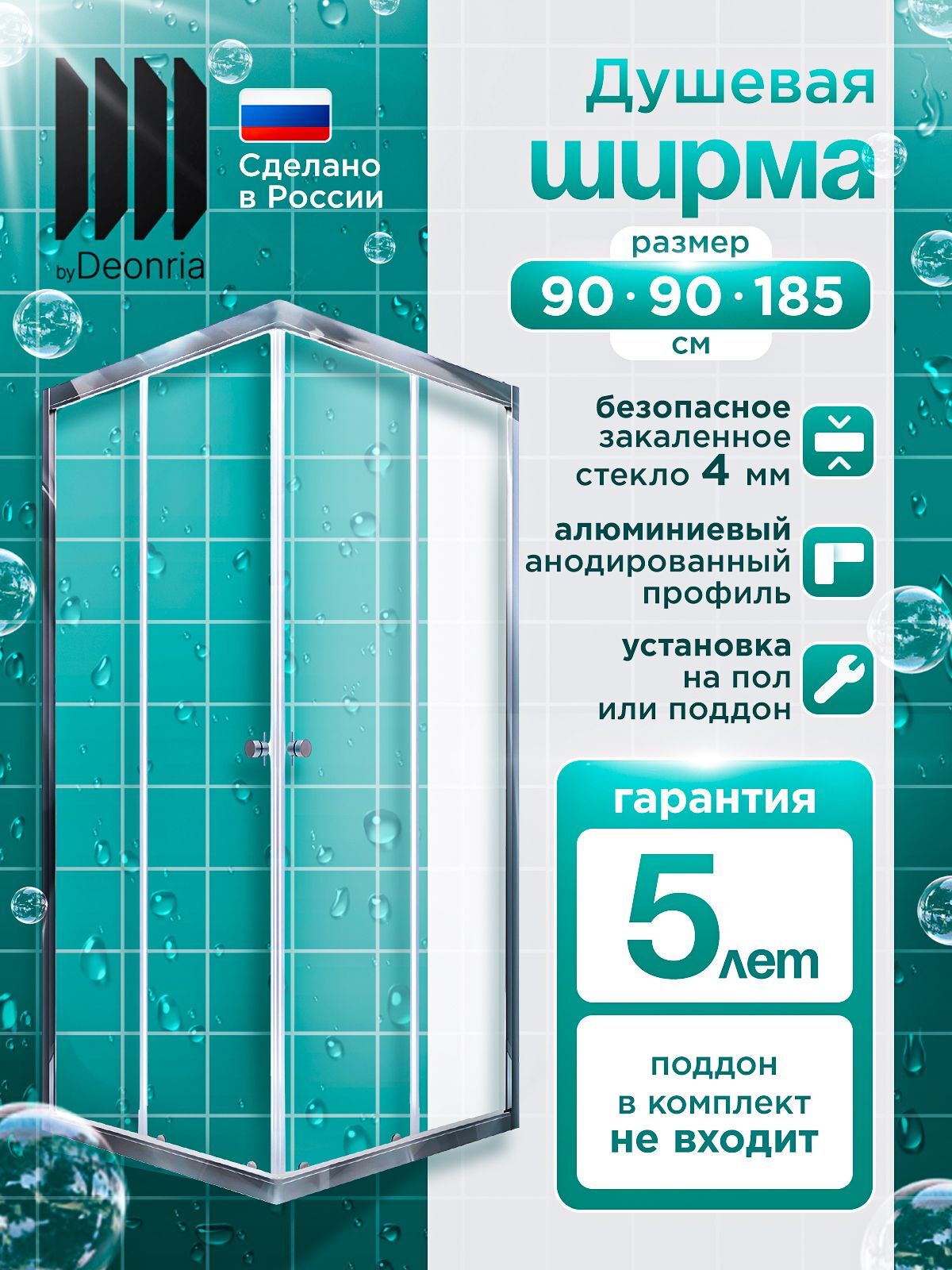 Душевая ширма DIONRIA (90х90) матовое стекло с рисунком вельвет, профиль хром