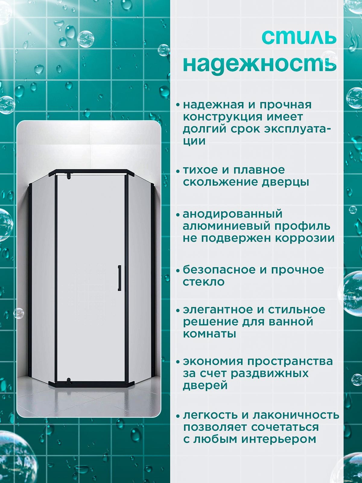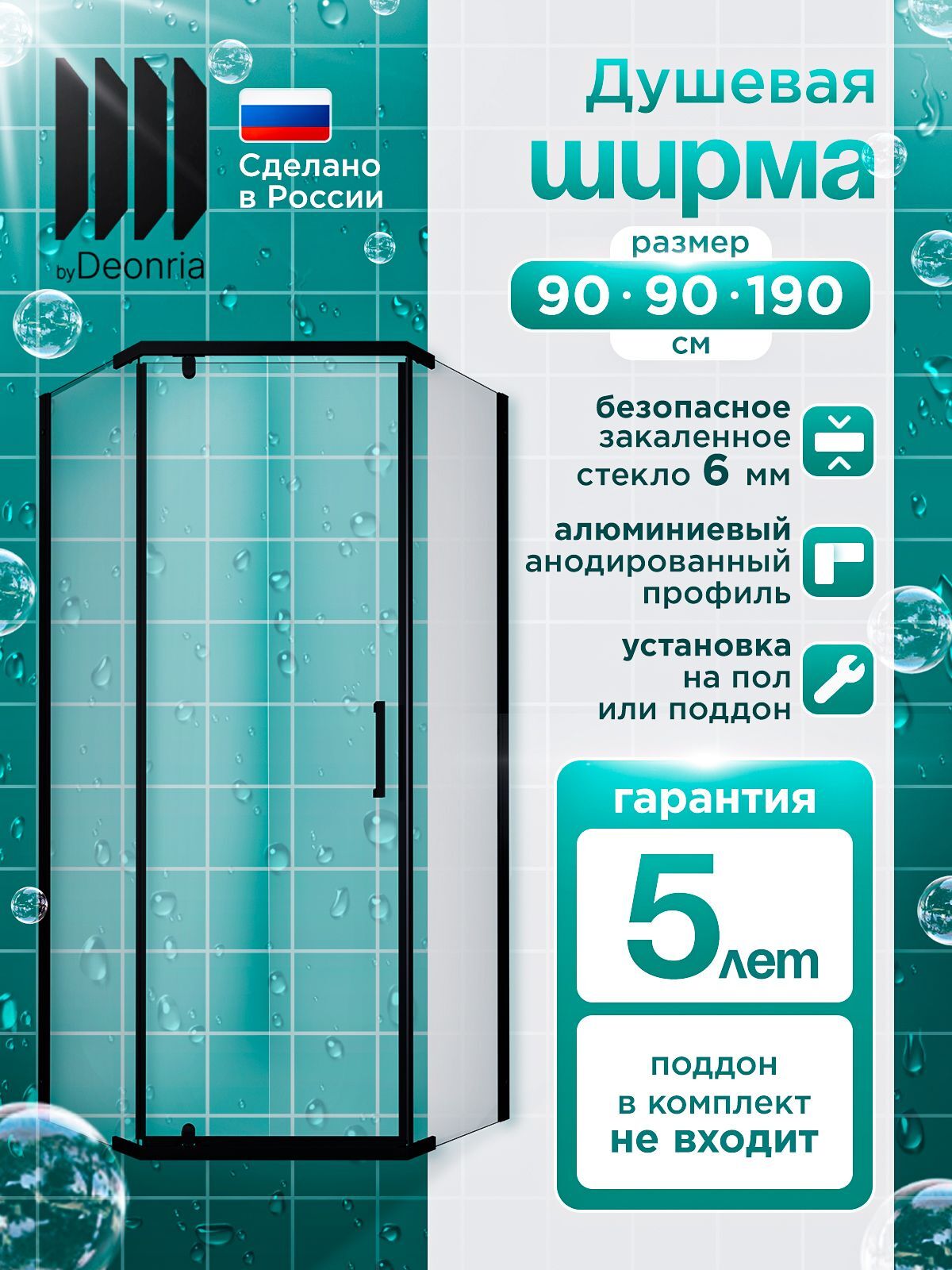 Душевая ширма DIONRIA (90х90) прозрачное стекло, профиль черный
