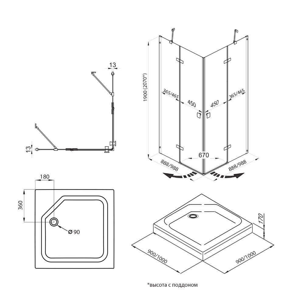 Душевая ширма DIONRIA (90х90) прозрачное стекло, профиль хром