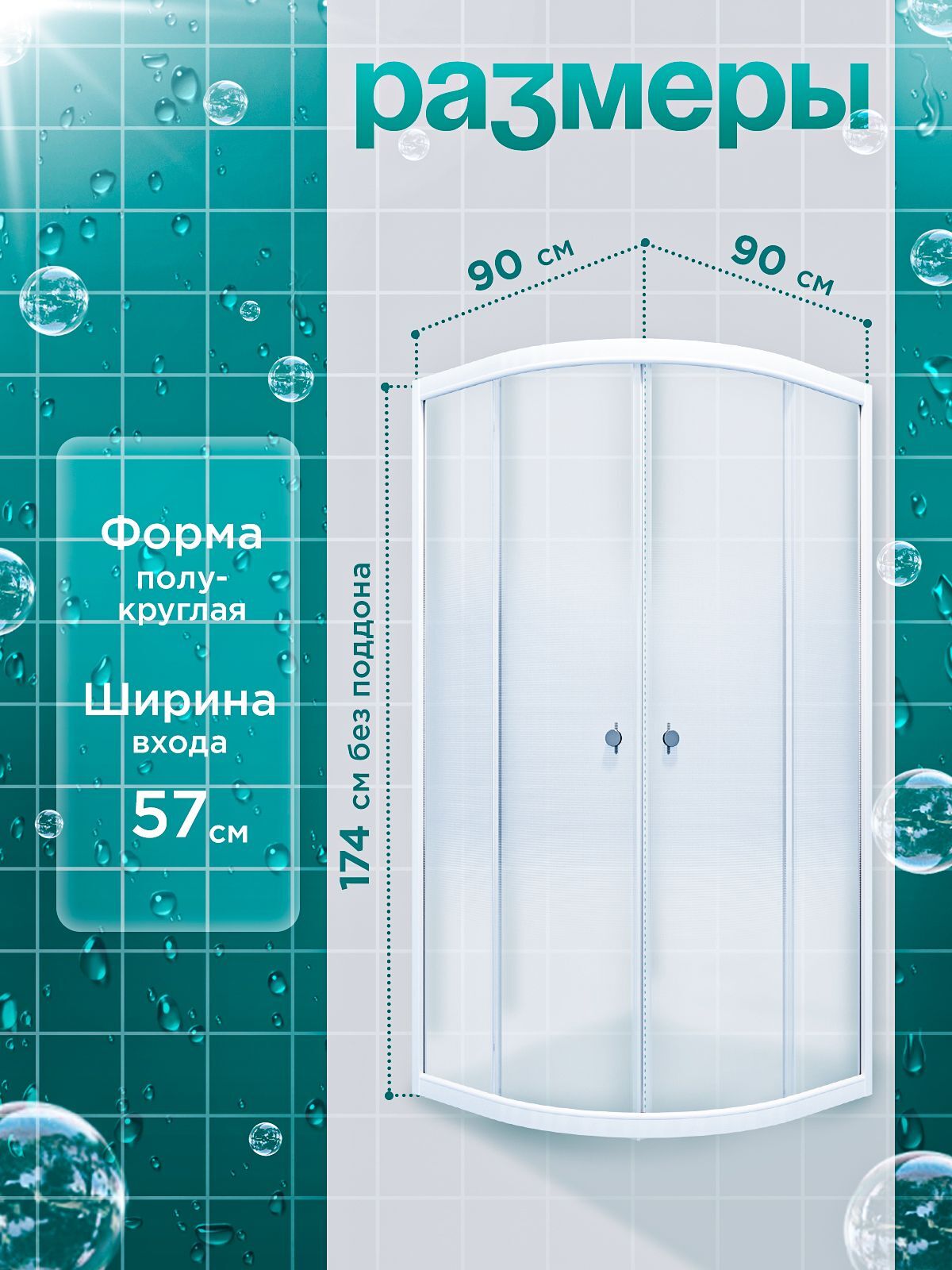 Душевая ширма DIONRIA (90х90) стекло с рисунком лайт, профиль белый