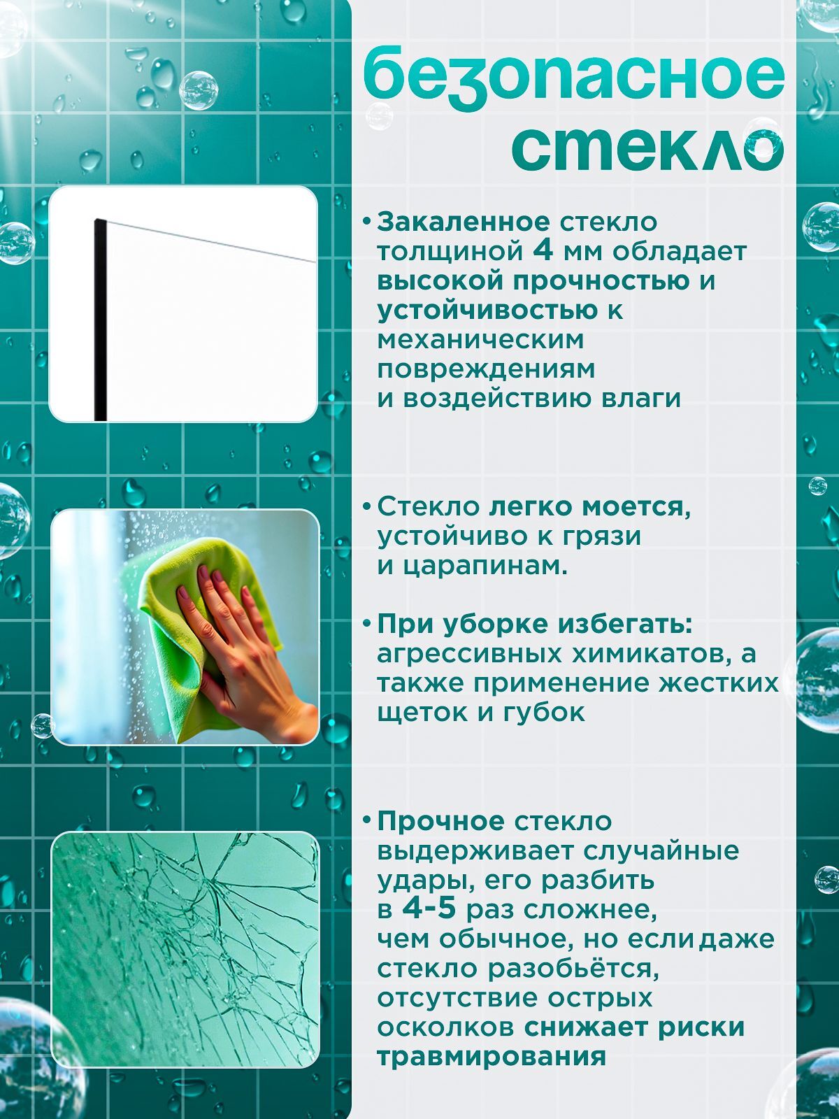 Душевая штора DIONRIA (140х50) стекло прозрачное, профиль черный