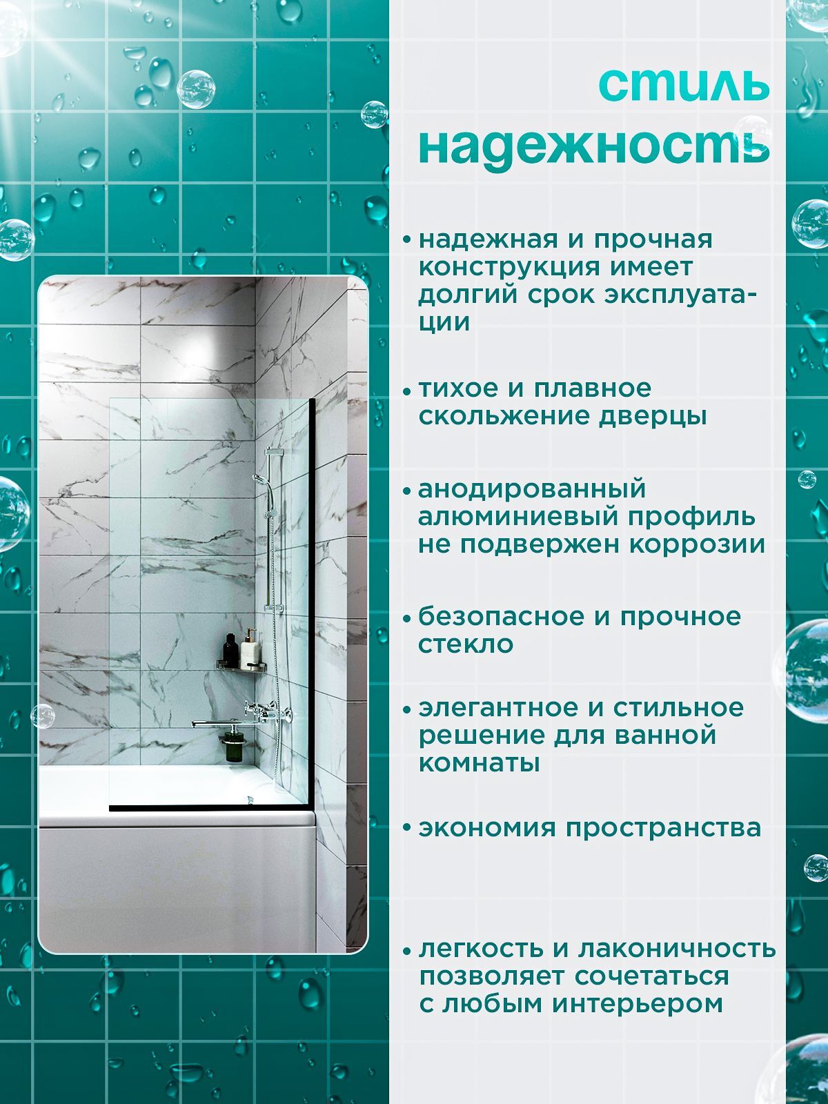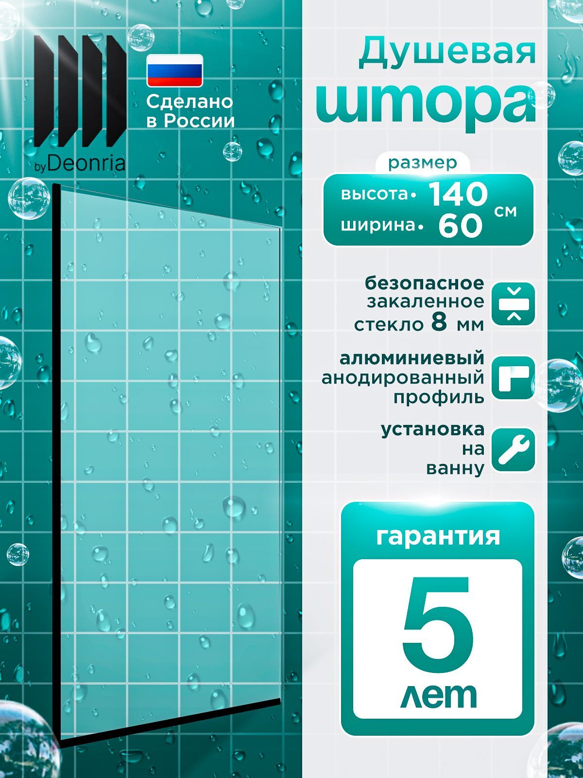 Душевая штора DIONRIA (140х60) стекло прозрачное, профиль черный