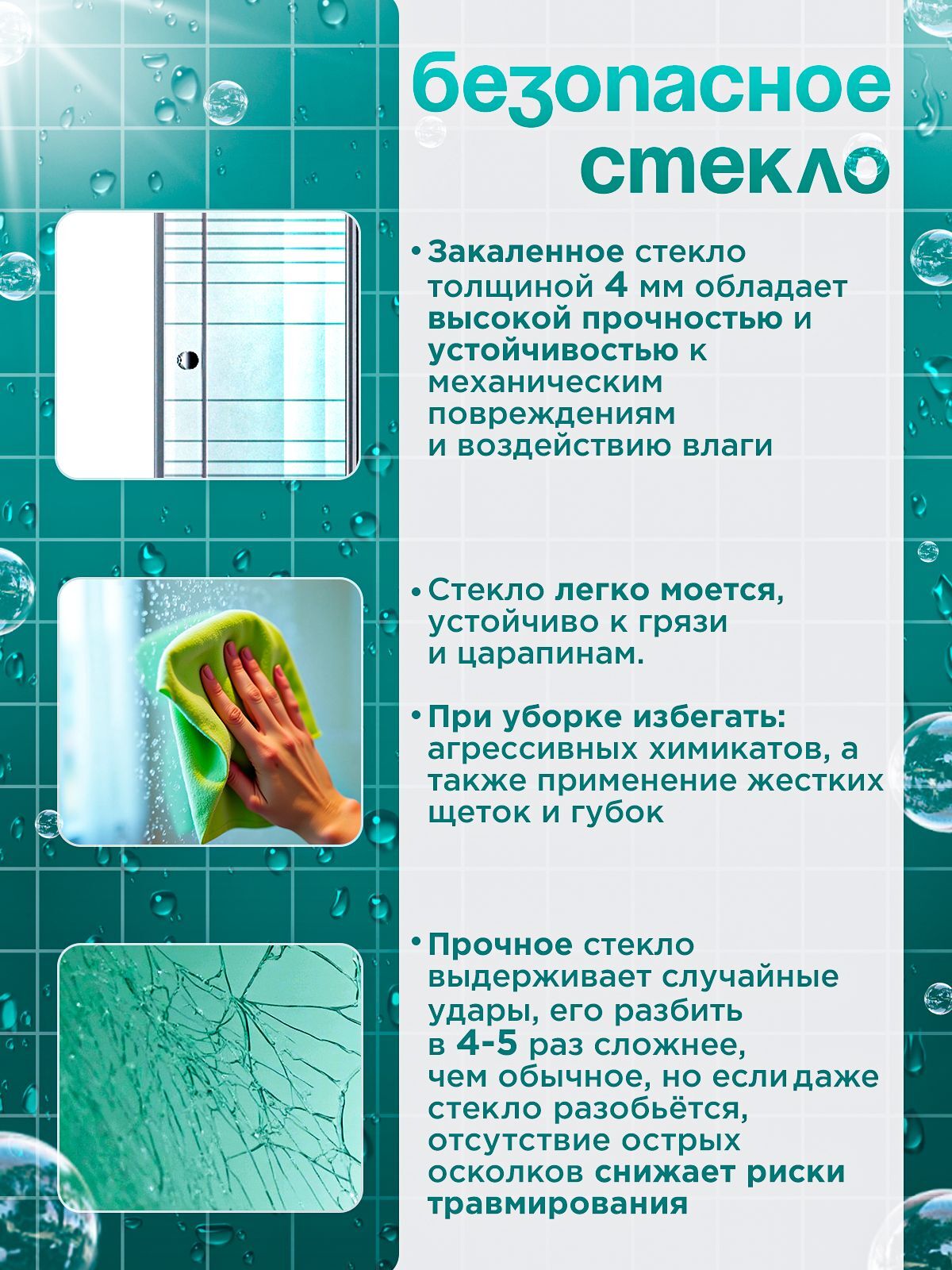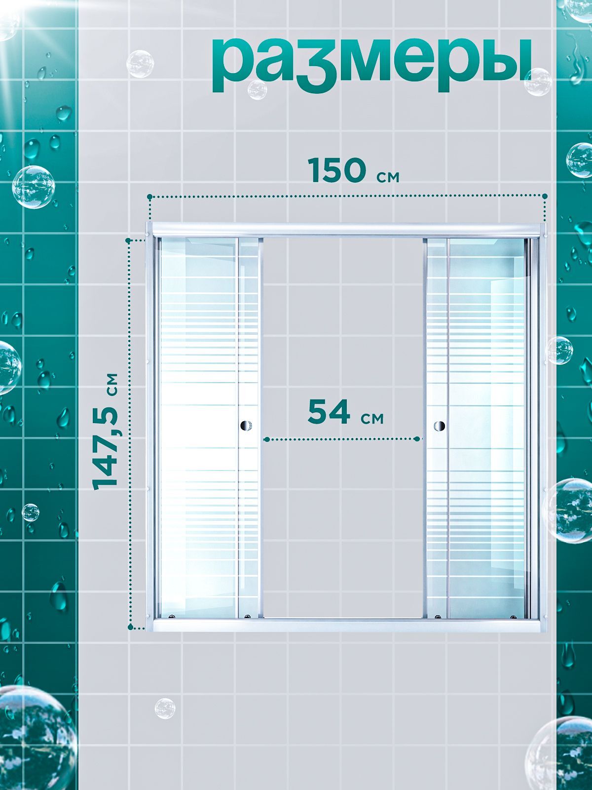 Душевая штора DIONRIA (150х147.5) стекло с рисунком полосы, профиль белый