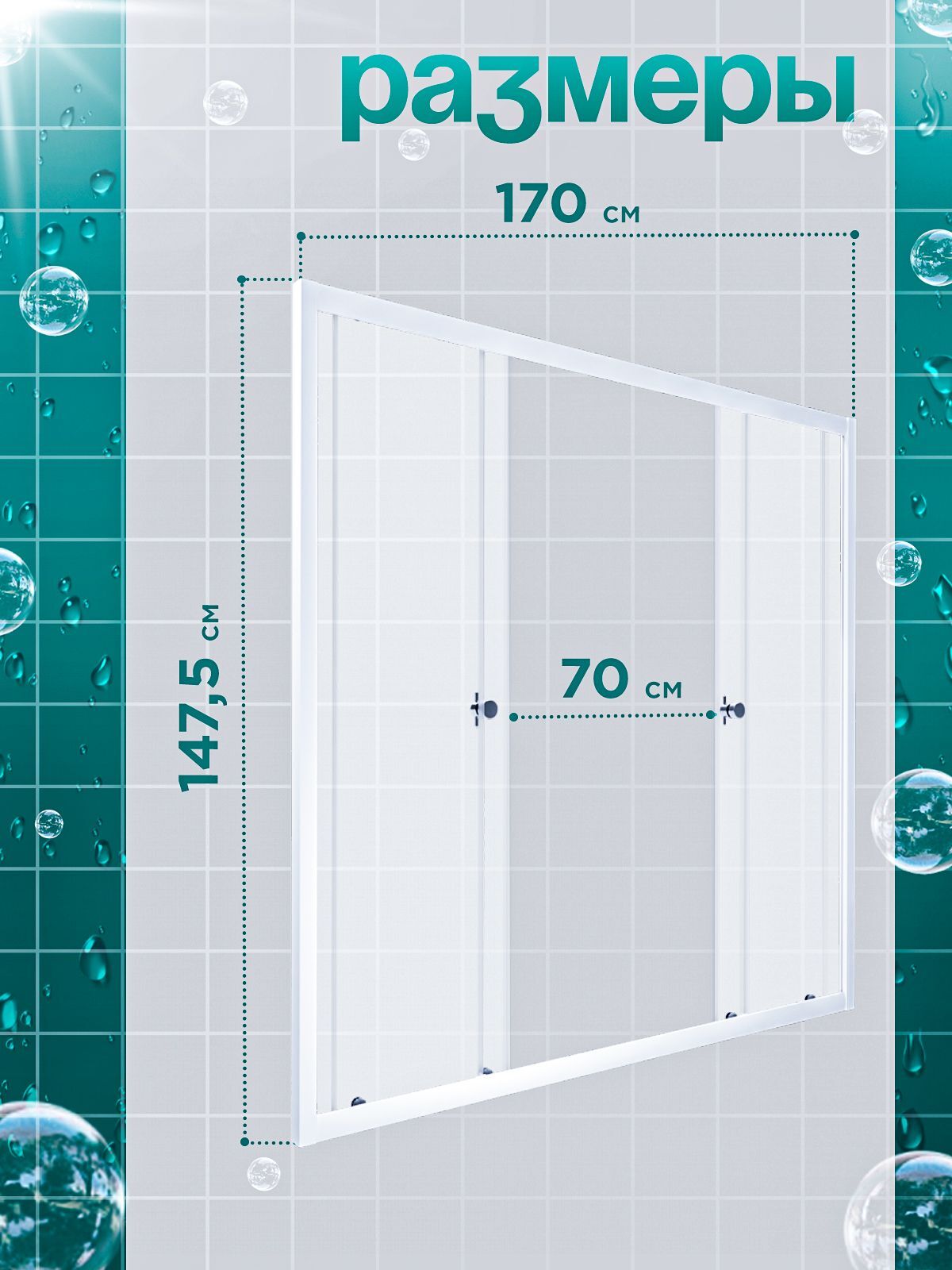 Душевая штора DIONRIA (170х147.5) стекло прозрачное, профиль белый
