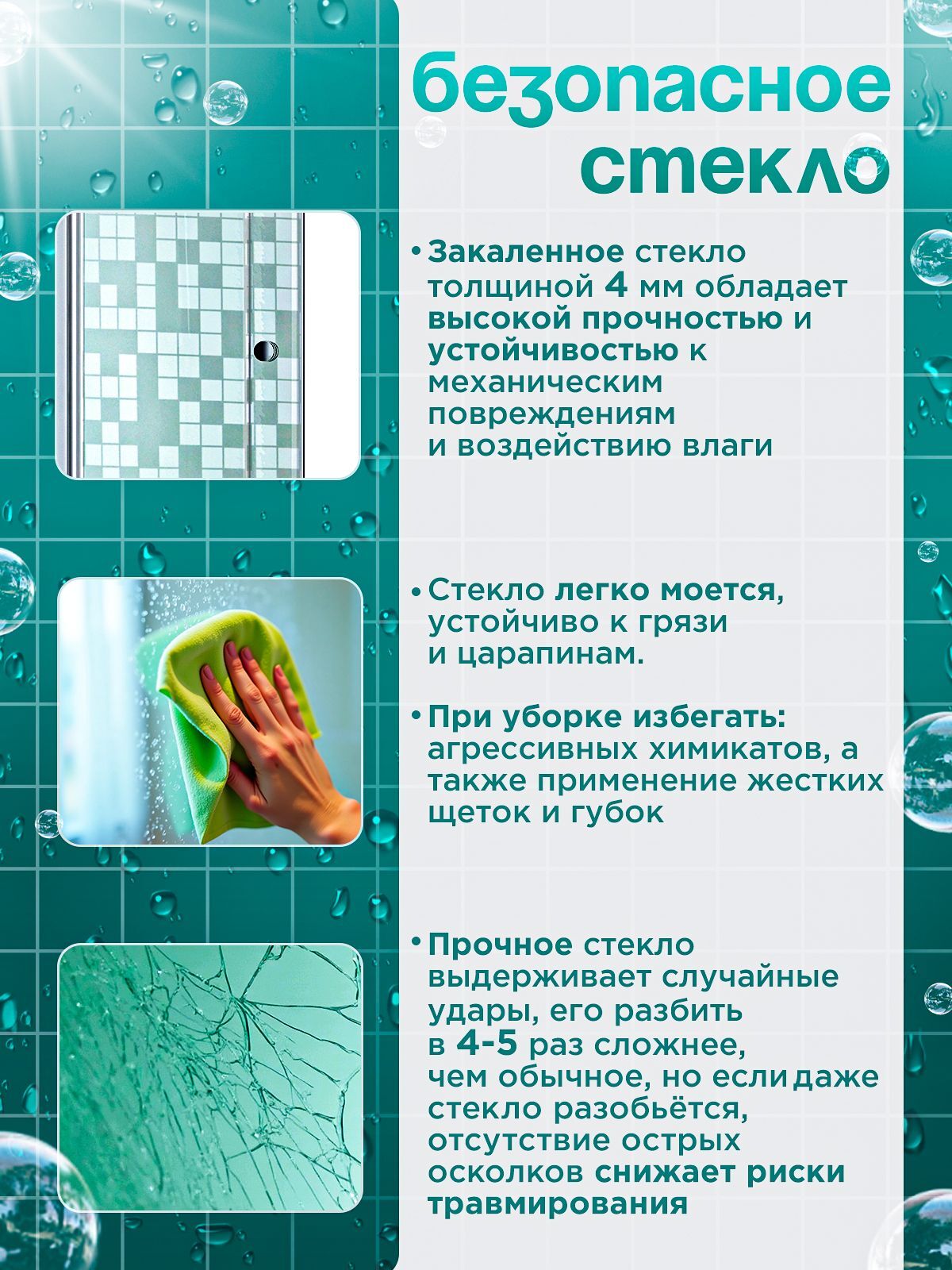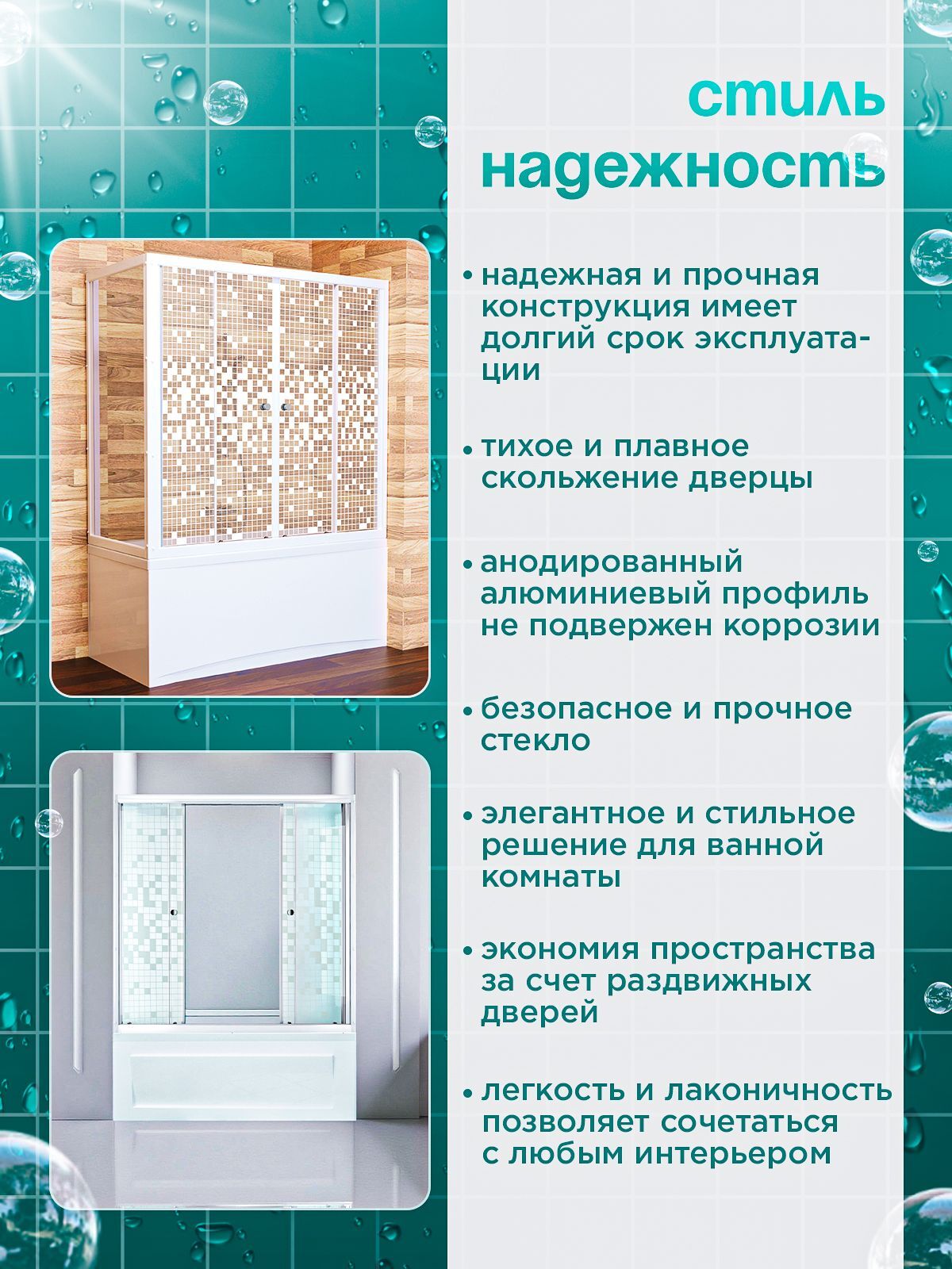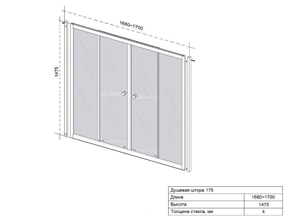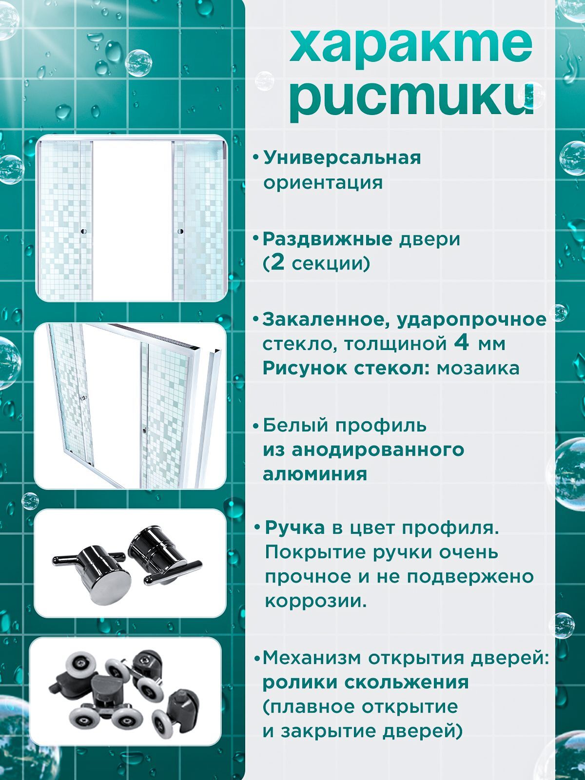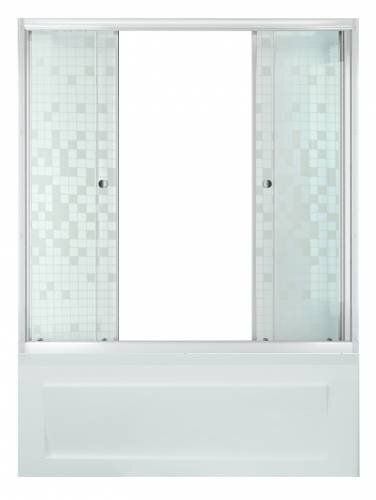 Душевая штора DIONRIA (170х147.5) стекло с рисунком мозаика, профиль белый