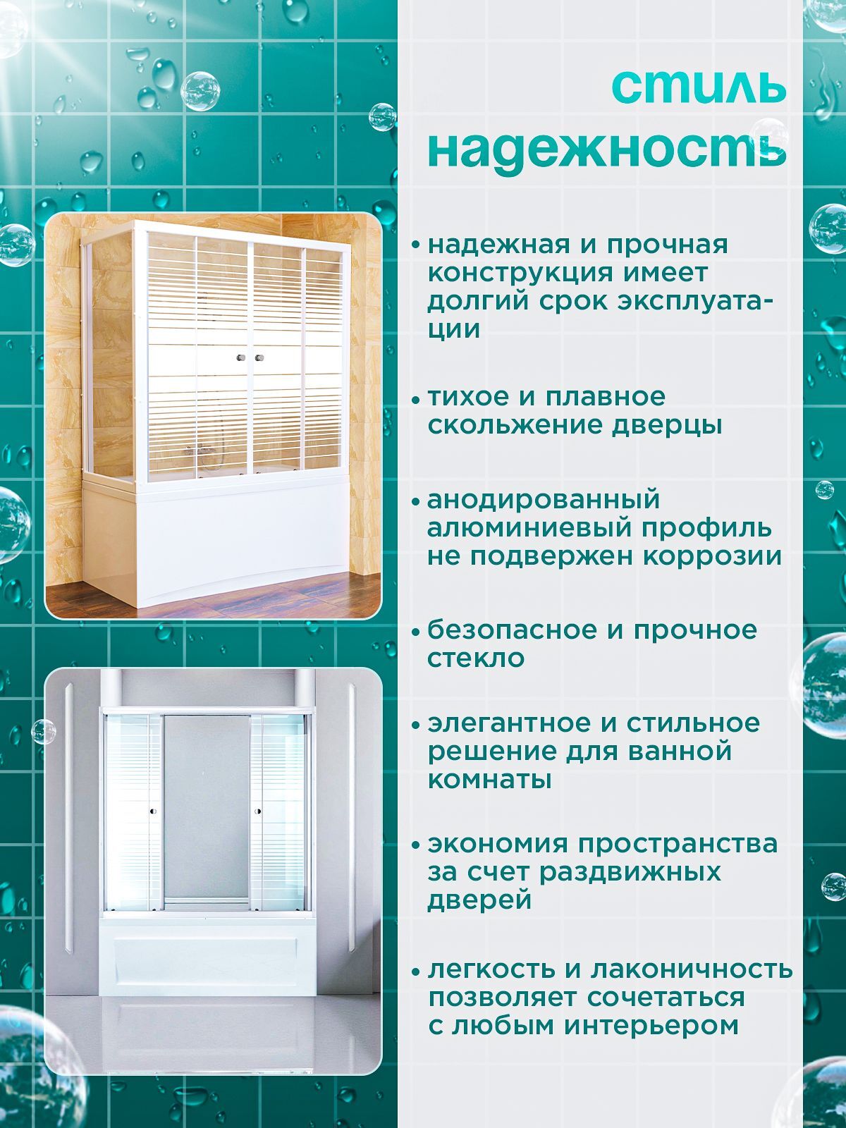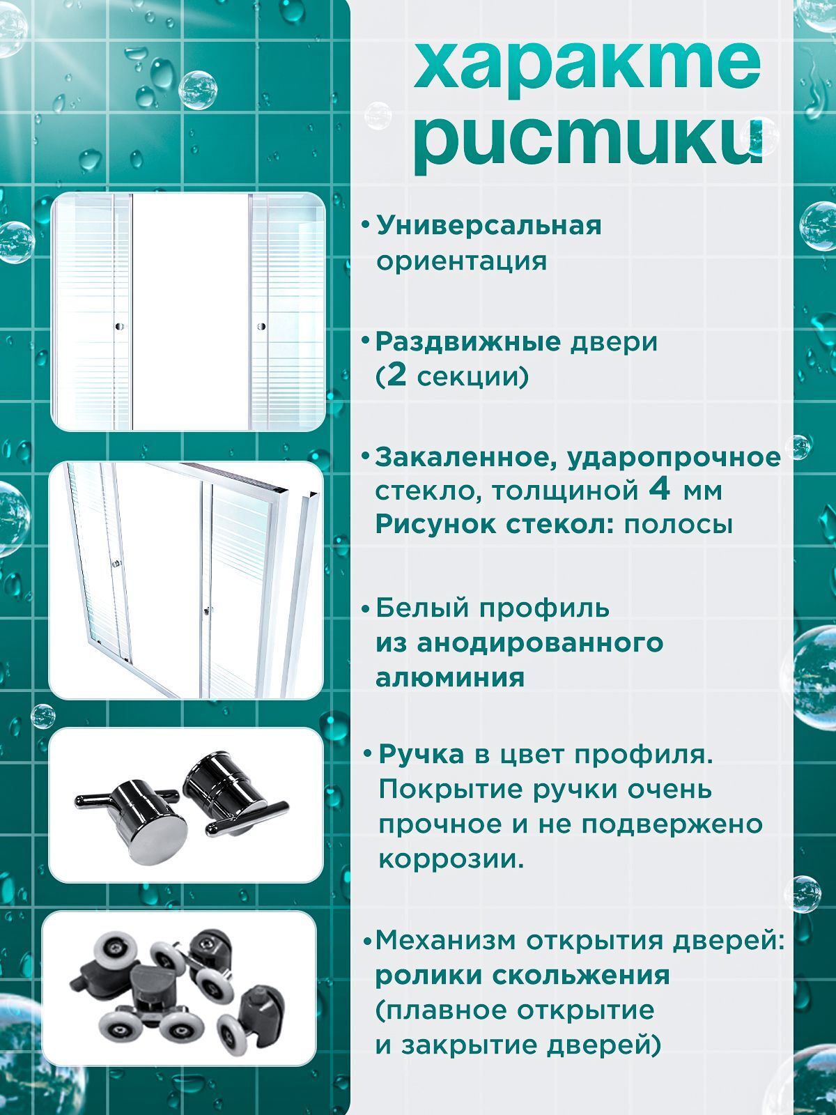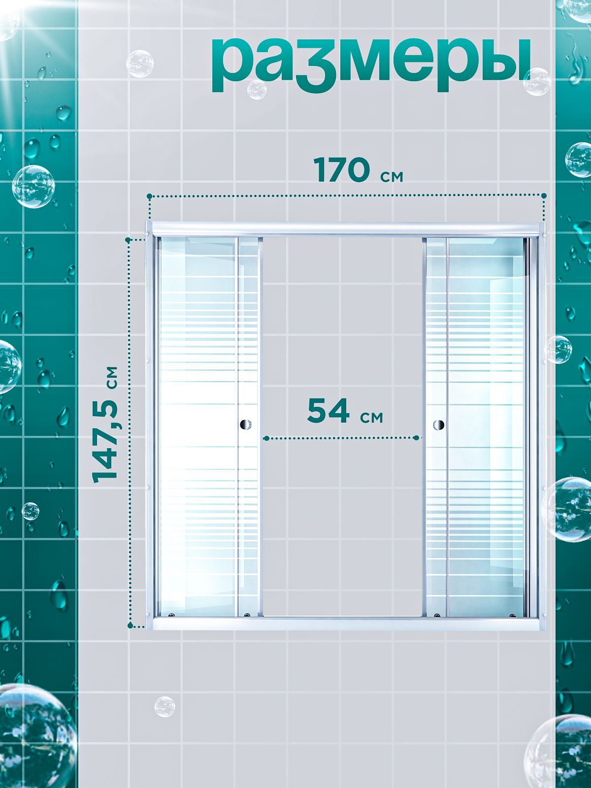 Душевая штора DIONRIA (170х147.5) стекло с рисунком полосы, профиль белый