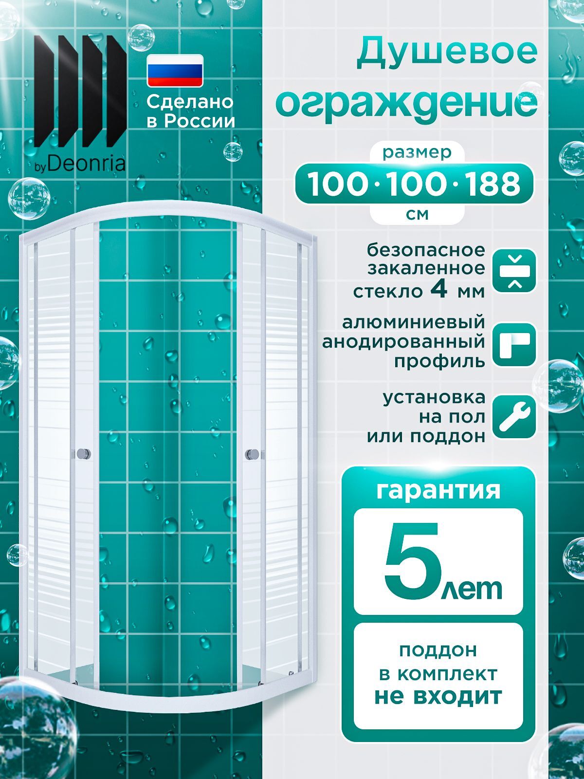Душевое ограждение DIONRIA (100х100) стекло с рисунком полосы, без поддона
