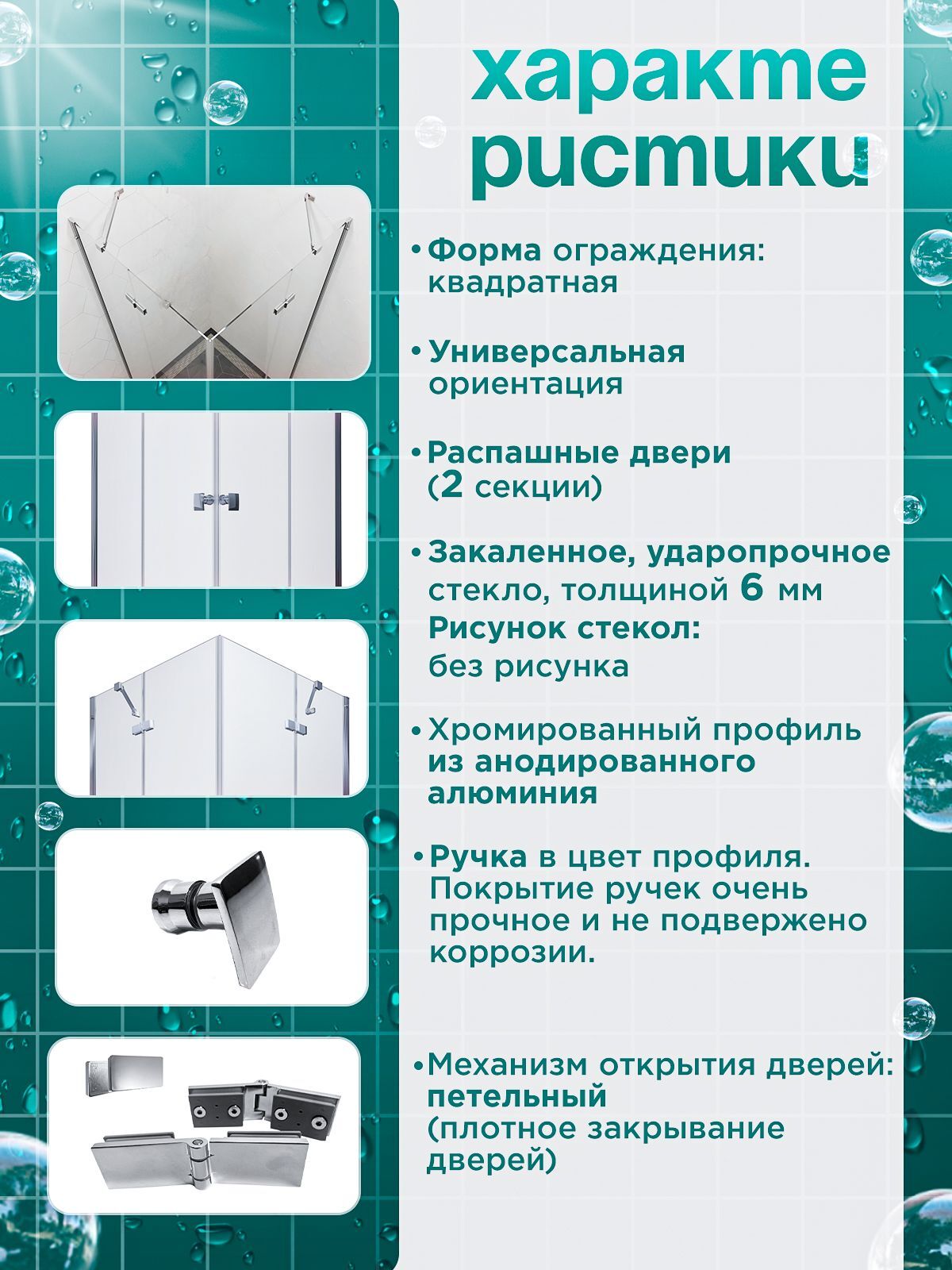 Душевое ограждение DIONRIA (90х90) стекло прозрачное, без поддона